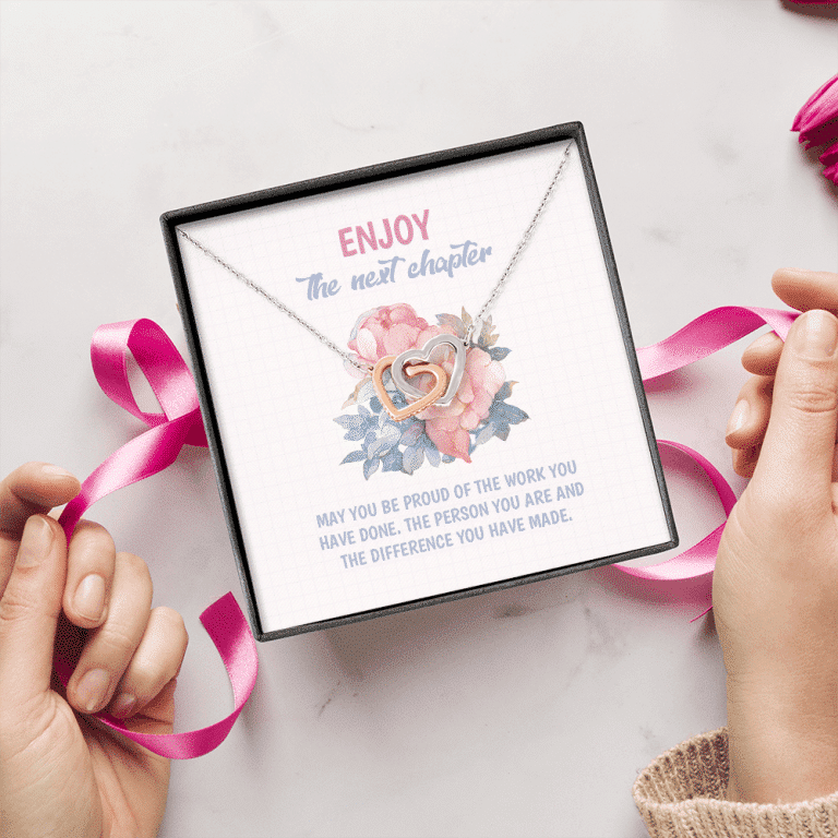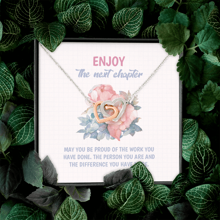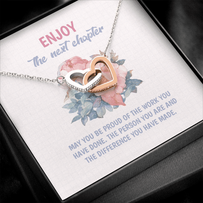 Let’s Shop Enjoy the Next Chapter May You Be Proud of the Work You Have Done Interlocking Hearts Pendant Necklace – Graduation Gift!