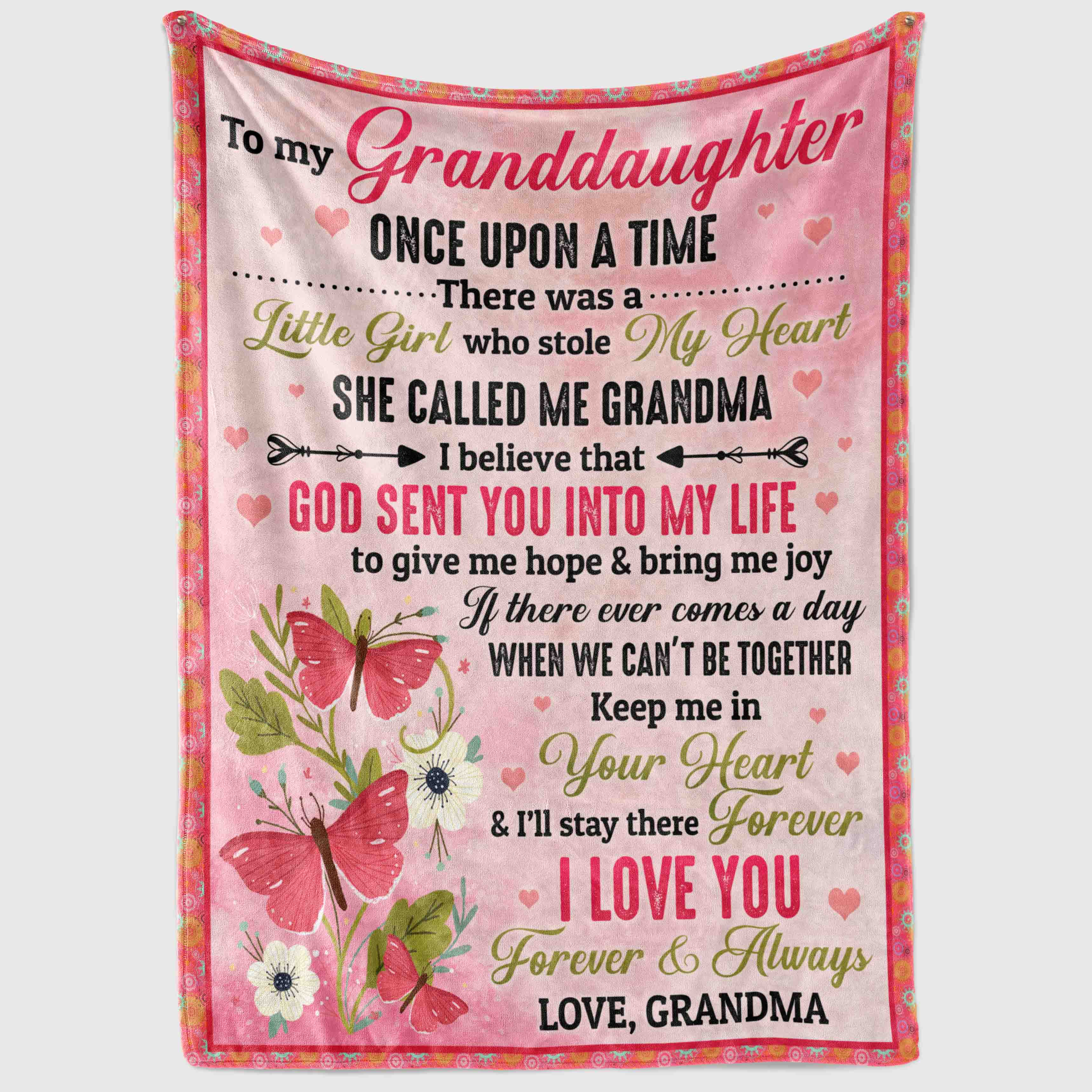 Shop Butterfly To My Granddaughter Once Upon A Time There Was A Little Girl Fleece Blanket – Premium Sherpa Blanket.