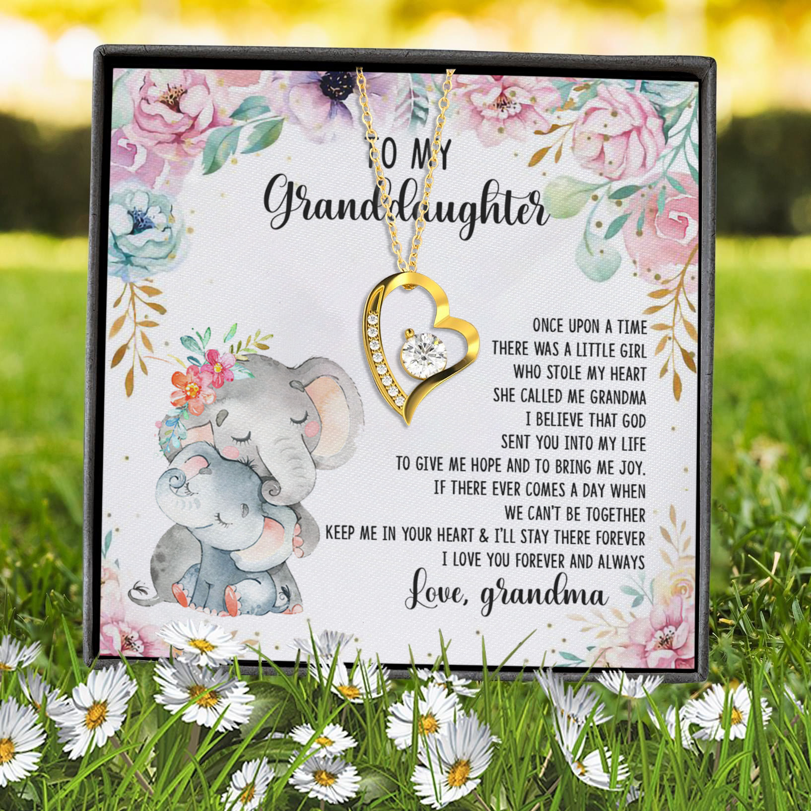 Let’s Shop Elephant To My Granddaughter Once Upon A Time There Was A Little Girl Forever Love Heart Pendant Necklace!