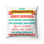 Shop To My Granddaughter Always Remember Youre in My Heart Throw Pillow-Decorative Pillow-Indoor Outdoor Cushion.