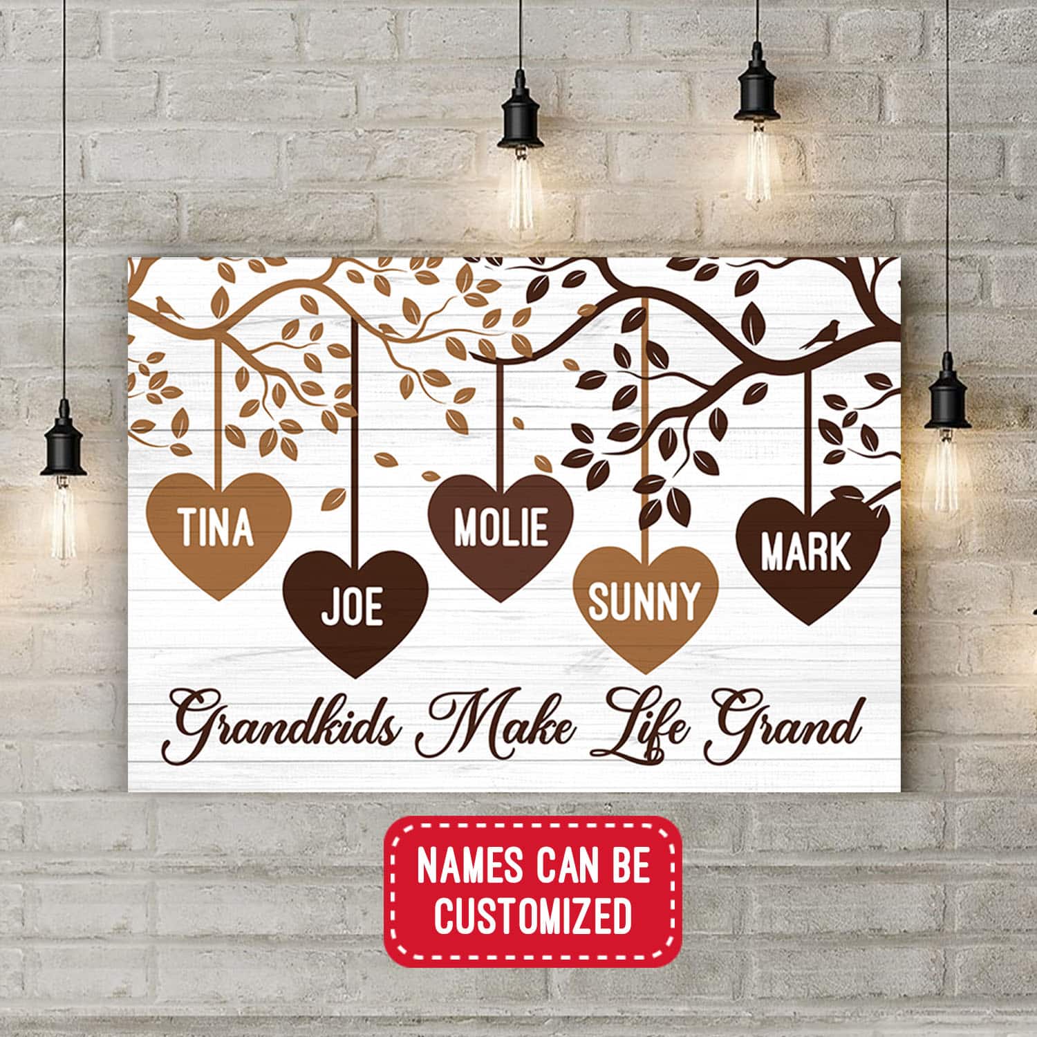 Let’s Shop Personalized Grandkids Make Life Grand Vintage Tree Heart Woody Wrapped Framed Canvas Prints – Unframed Poster!