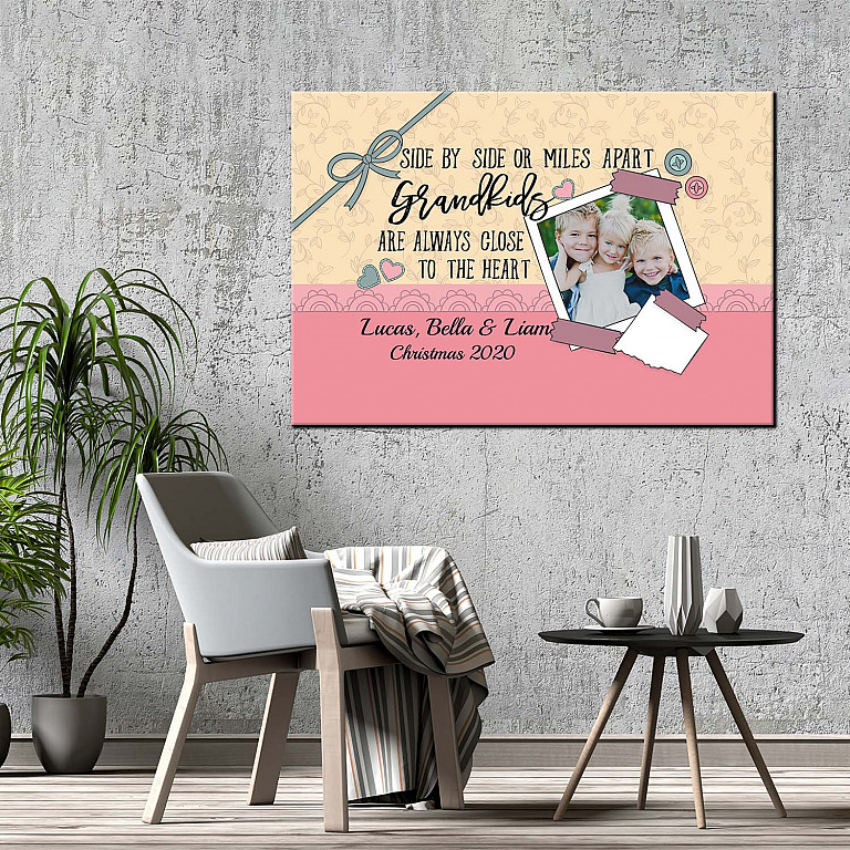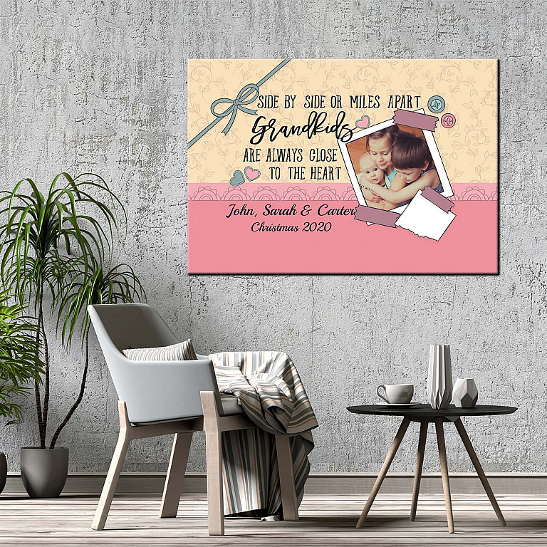 Let’s Shop Personalized Photo Side By Side Or Miles Apart Grandkids Are Always Close To The Heart Framed Canvas – Unframed Poster!