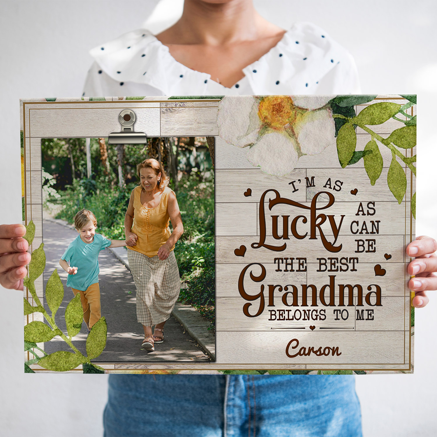 Let’s Shop Custom Photo I’m As Lucky As Can Be The Best Grandma Gallery Wrapped Framed Canvas Prints – Unframed Poster!