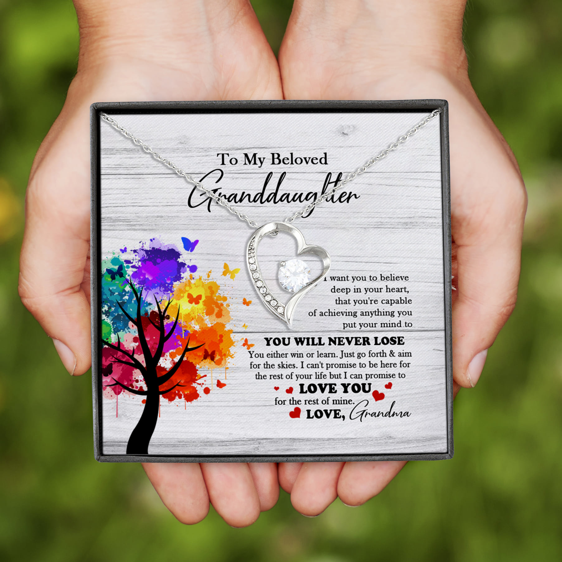 Let’s Shop Grandma To My Beloved Granddaughter I Want You To Believe Deep In Your Heart Forever Love Heart Pendant Necklace!