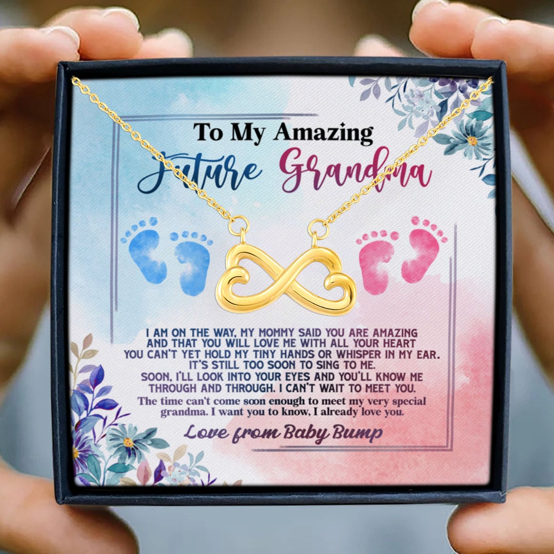 Let’s Shop Baby Bump To My Amazing Future Grandma I Am On The Way Infinity Heart Pendant Necklace – Grandma To Be Gifts!