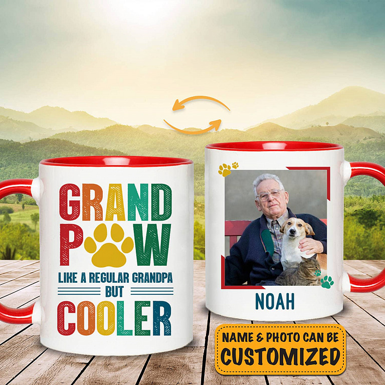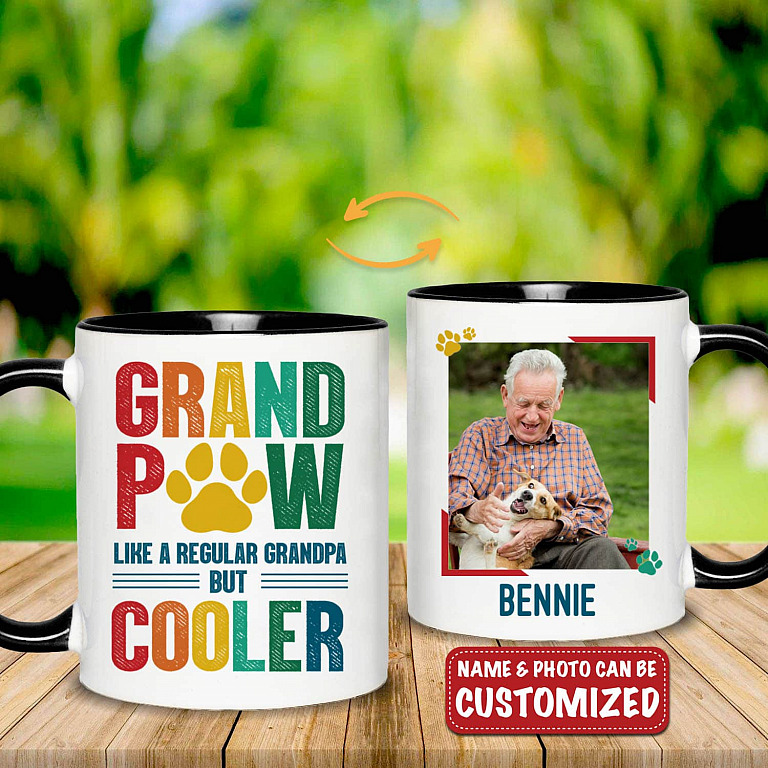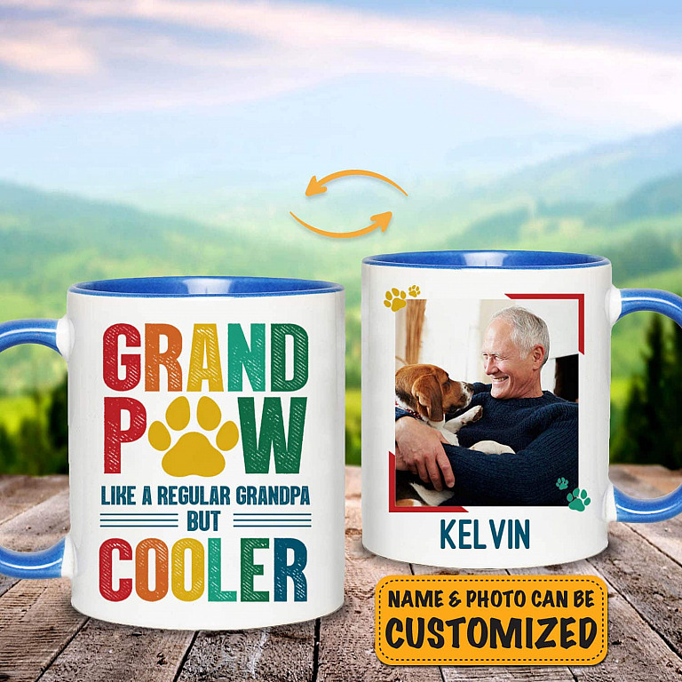 Let’s Shop Personalized Photo Grandpaw Like A Regular Grandpa But Cooler Two Side Accent Mug – Personalized Dog Grandpa Gifts!