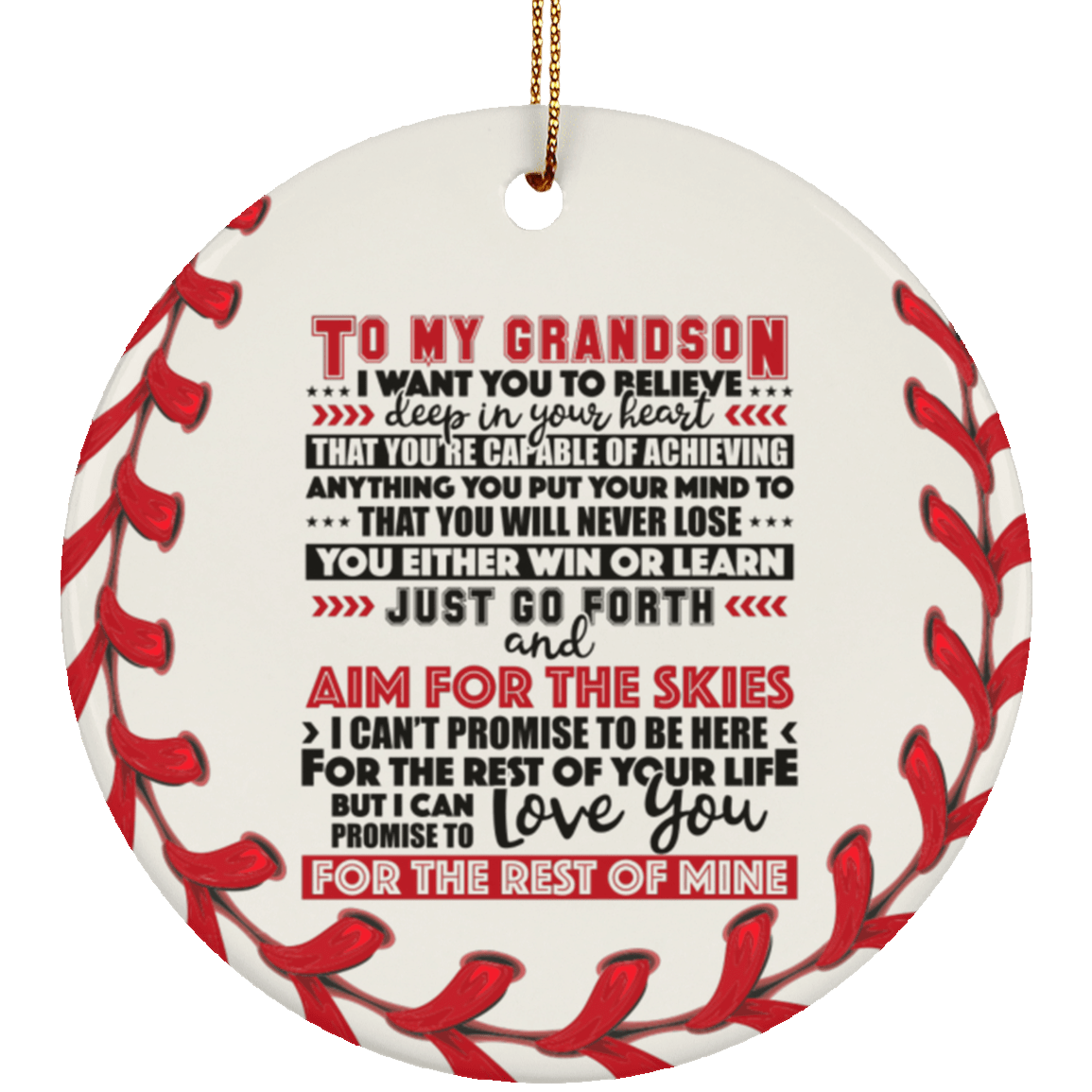 Shop To My Grandson Just Go Forth Baseball Decorative Christmas Flat Circle Porcelain Ceramic Ornament Keepsake.