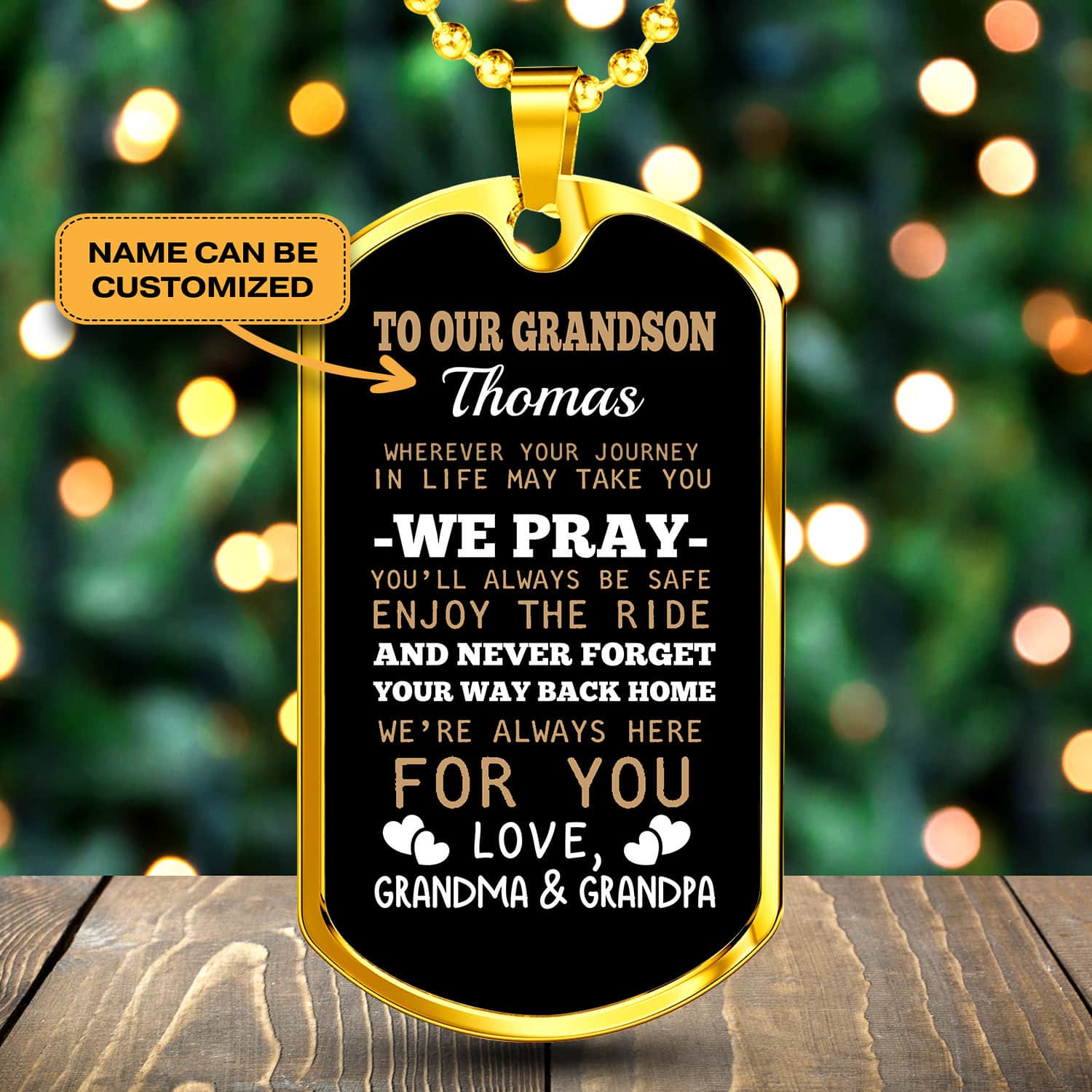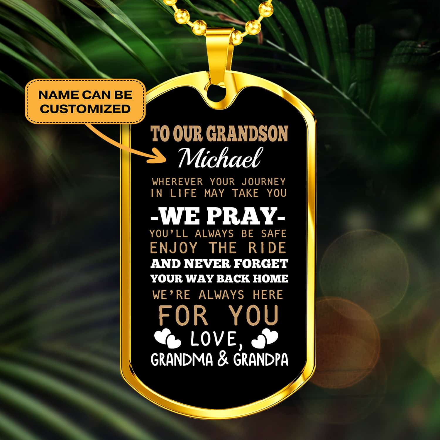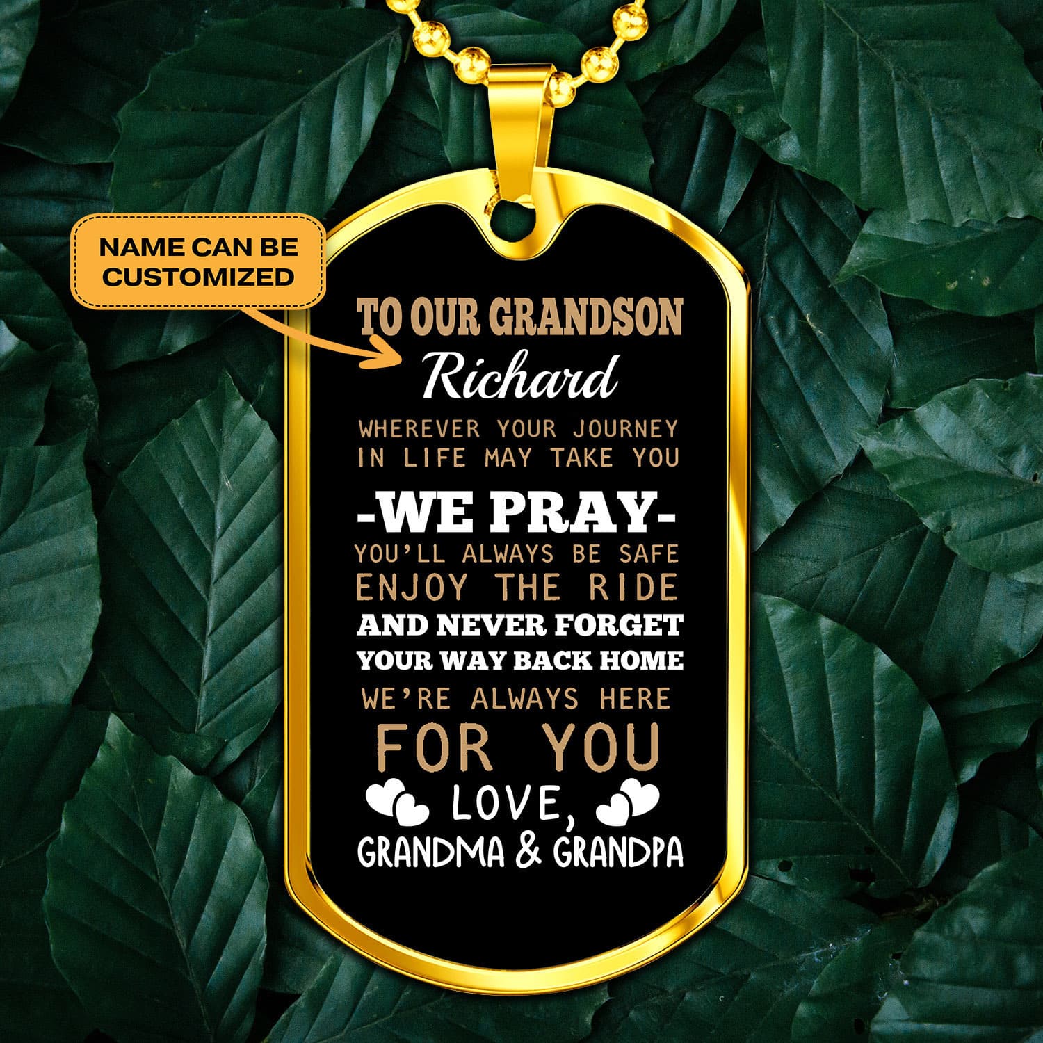Are you spending too much time to find creative merchandise for you or suitable & special gifts for your mommy, your daddy, your son, your daughter, your children, your friends or someone you love? The struggle is over because we have various Grandson Necklaces for Boys, Grandma Grandson Necklace, Necklace Grandpa Grandson, Grandson Necklace from Grandpa, Grandpa Grandson Necklace, Grandson Dog Tag from Grandma, Compass Grandson Necklace, We Pray You’ll Always Be Safe, Enjoy the Ride and Never Forget Your Way Back Home, to Our Grandson Necklace, Personalized to Our Grandson Necklace, Whenever Your Journey in Life May Take You Necklace which will make perfect presents for your beloveds. In order to make your present stand out, we have created lots of unique and awesome customized photo gifts & personalized designs.