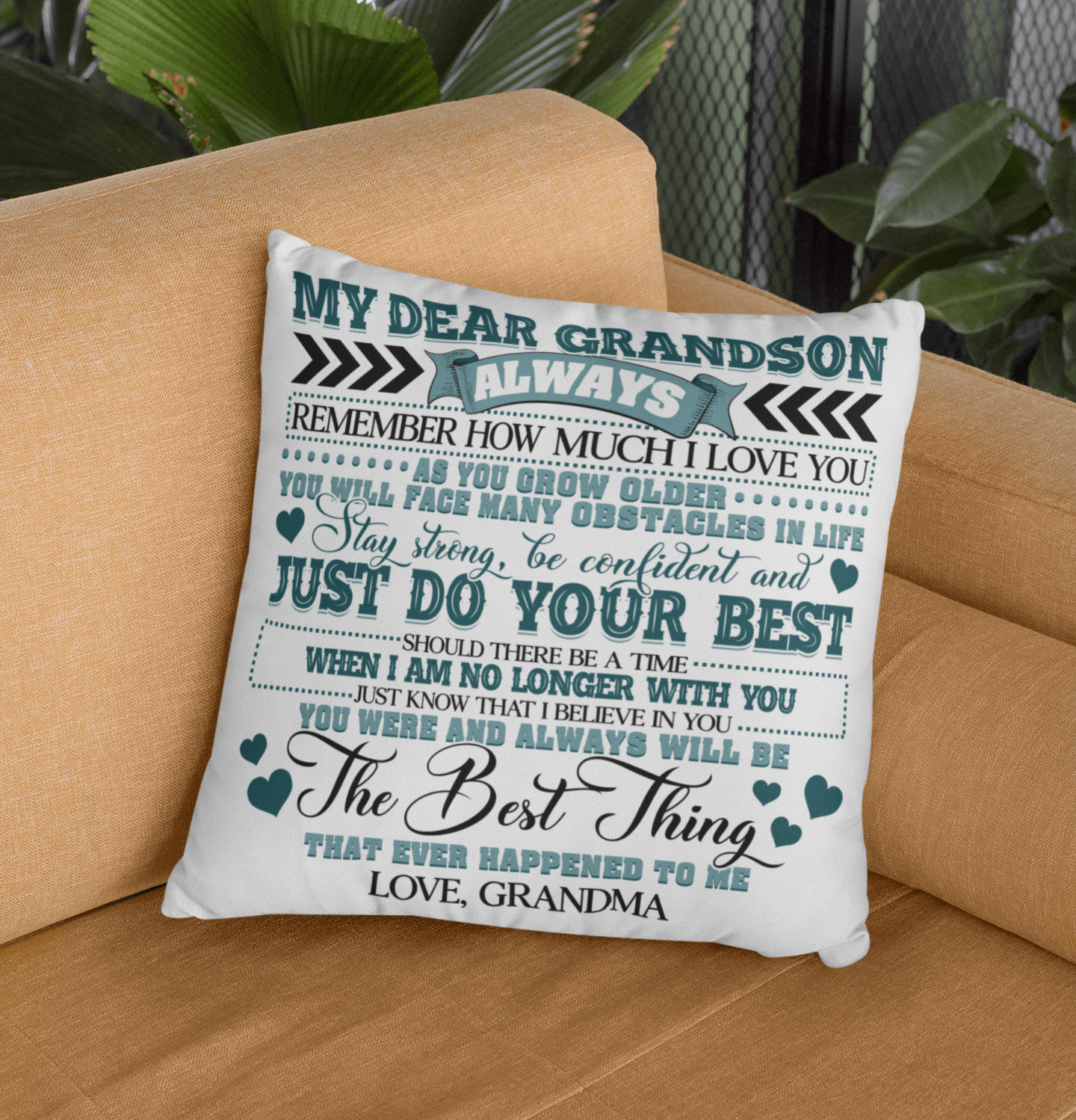 Shop My Dear Grandson Always Remember How Much I Love You Throw Pillow -Decorative Pillow -Indoor Outdoor Cushion.