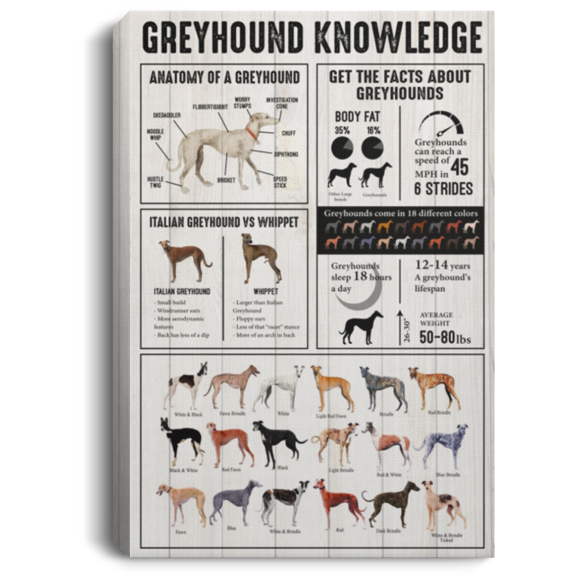 Greyhound Knowledge Gallery Wrapped Framed Canvas Prints – Unframed Poster – Home Decor Wall Art