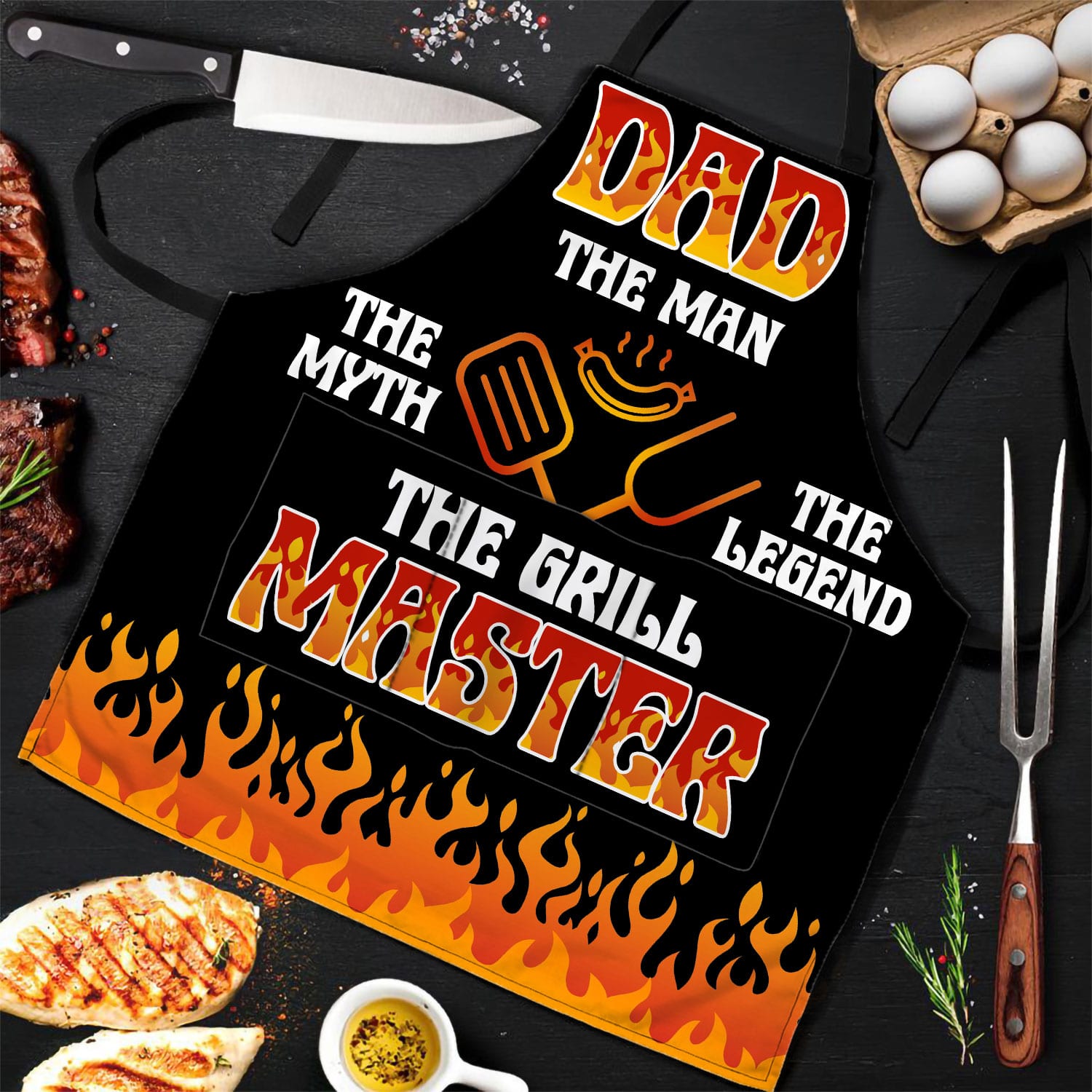 Let’s Shop Dad The Man The Myth The Grill Master Funny Cooking Apron With 3 Pockets – Father’s Day Apron Gifts For Men!