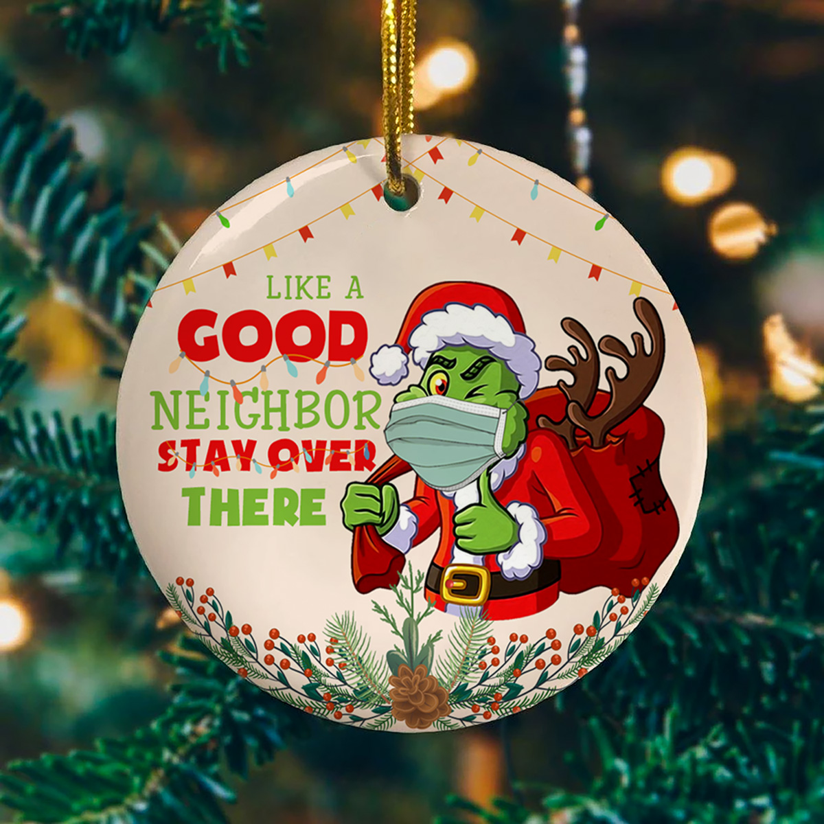 Let’s Shop Like A Good Neighbor Stay Over There Funny Circle Christmas Ornament Keepsake – Holiday Flat Ornament!