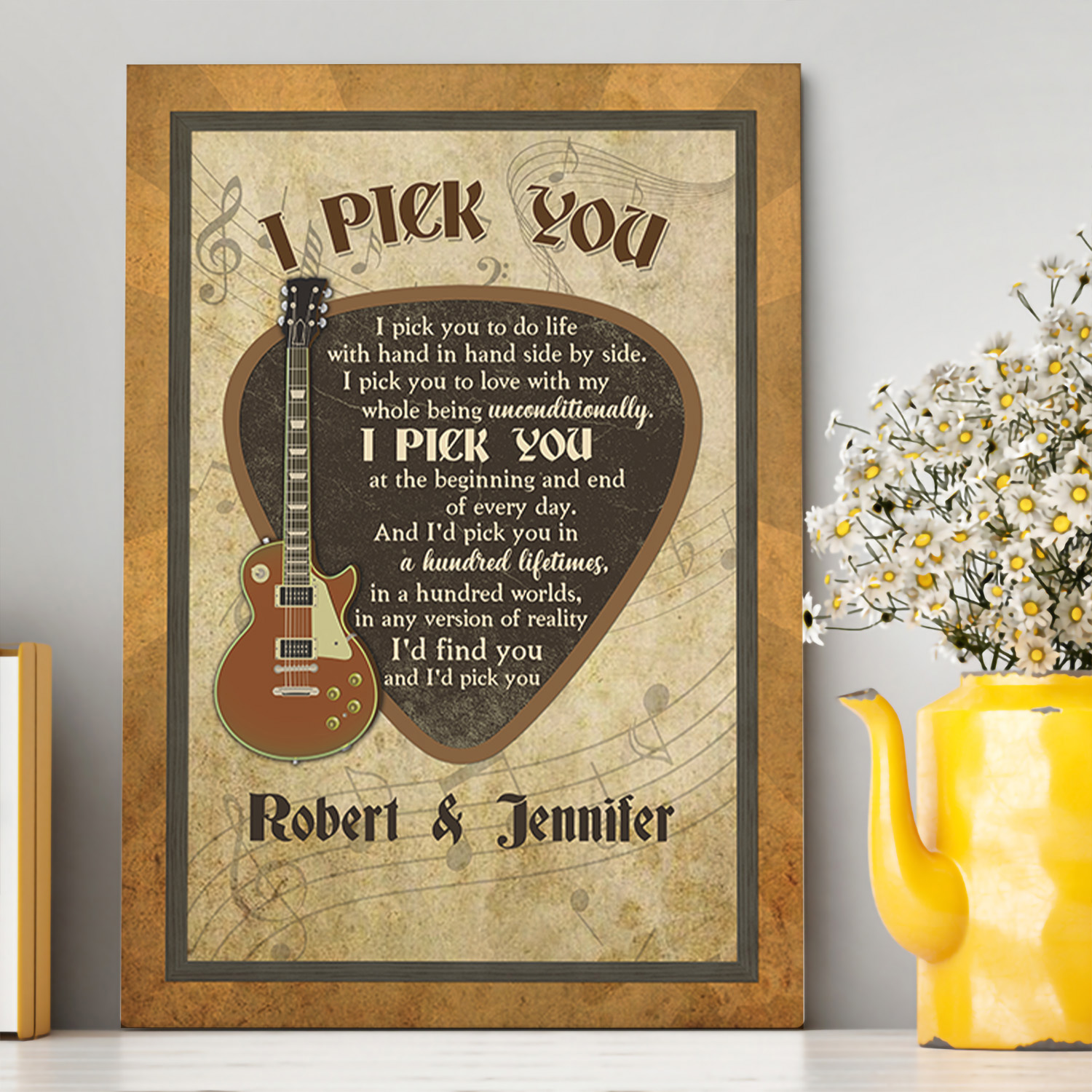 Let’s Shop Personalized I Pick You To Do Life With Hand In Hand Side By Side Electric Guitar Canvas Prints – Unframed Poster!
