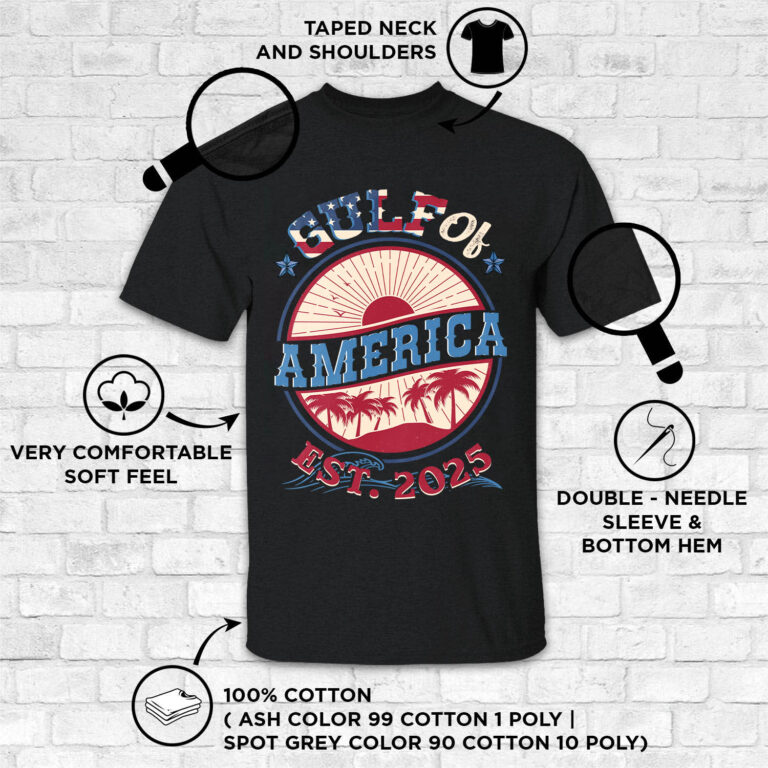 Are you spending too much time to find creative merchandise for you or suitable & special gifts for your mommy, your daddy, your son, your daughter, your children, your friends or someone you love? The struggle is over because we have various type of products such as ulf Retro Of America Est 2025 USA American Flag Shirt, Gulf of America Retro Shirt, Trump America’s Gulf Mexico President Trump Shirt, Gulf of America Shirt, Gulf of America 2025 Shirt which will make perfect presents for your beloveds. In order to make your present stand out, we have created lots of unique and awesome customized photo gifts & personalized designs.