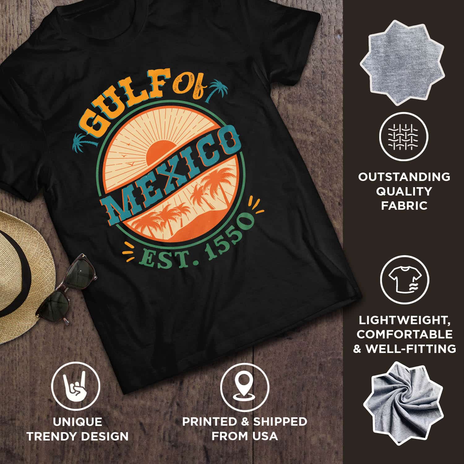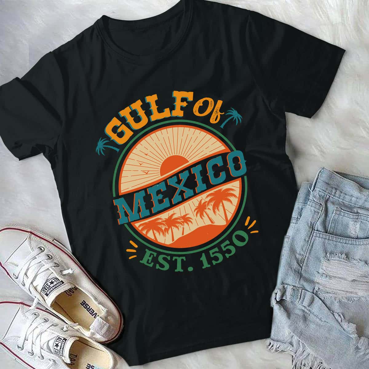 Gulf of Mexico Est 1550 Forever T-Shirt – Gulf of Mexico Palms Summer Holiday Vacation V-Neck Shirt
