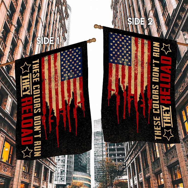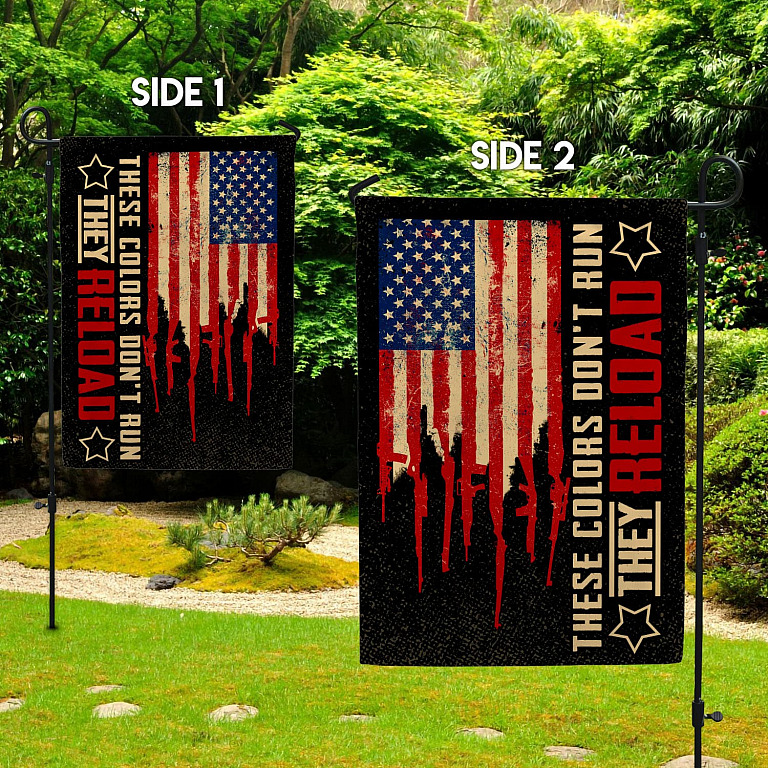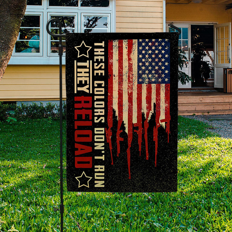 Let’s Shop These Color Don’t Run They Reload Garden Flag – American Flag With Gun As Stripes – 2nd Amendment House Flag!