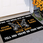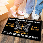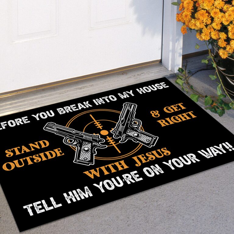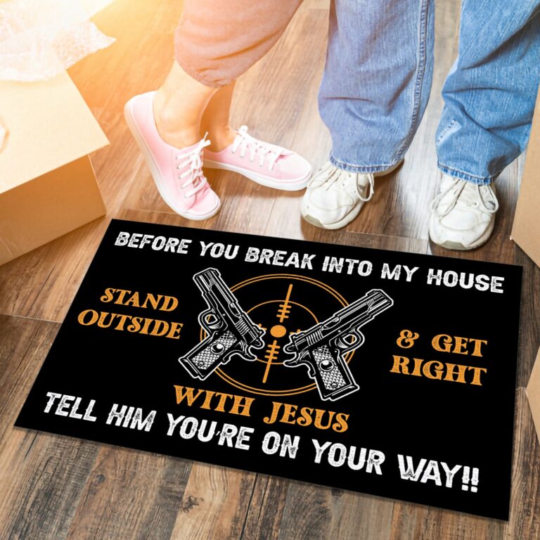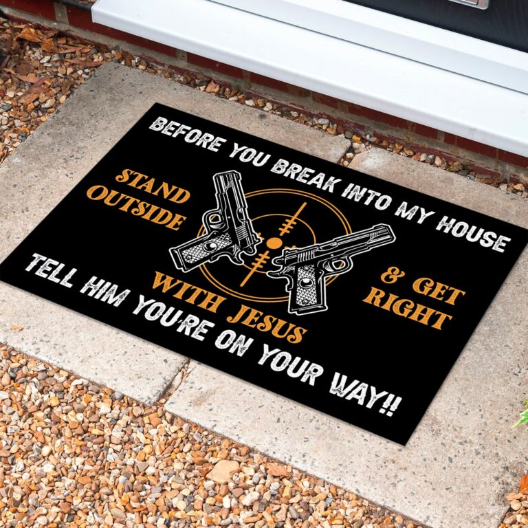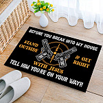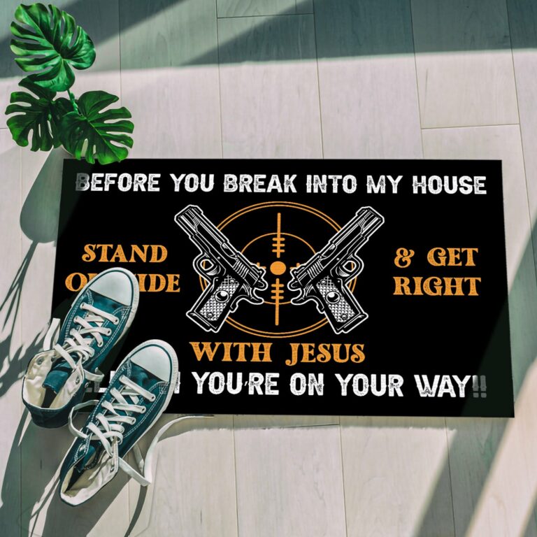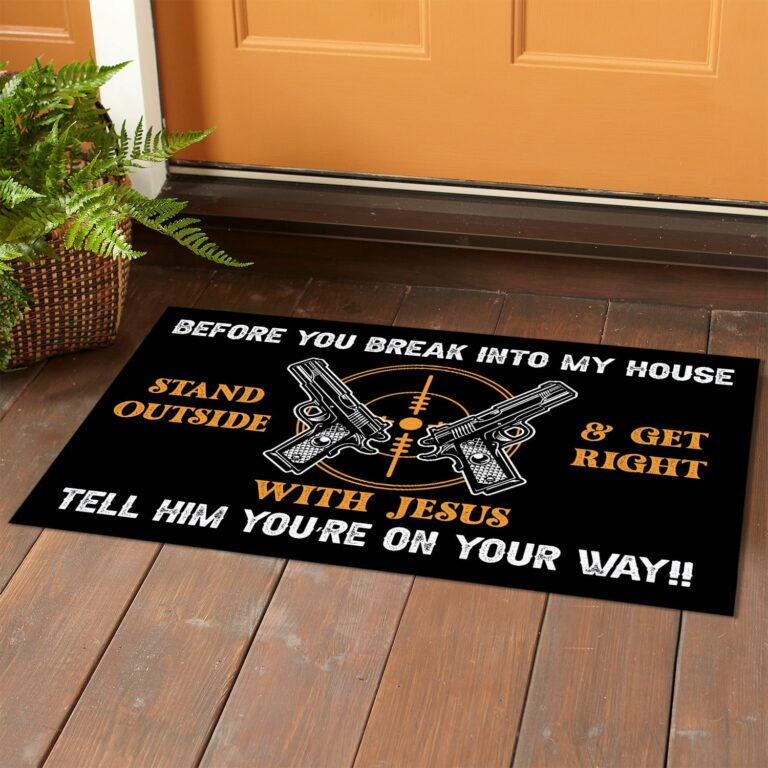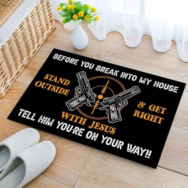 Let’s Shop Before You Break Into My House Stand Out Side And Get Right With Jesus Funny Gun Indoor Outdoor Doormat!
