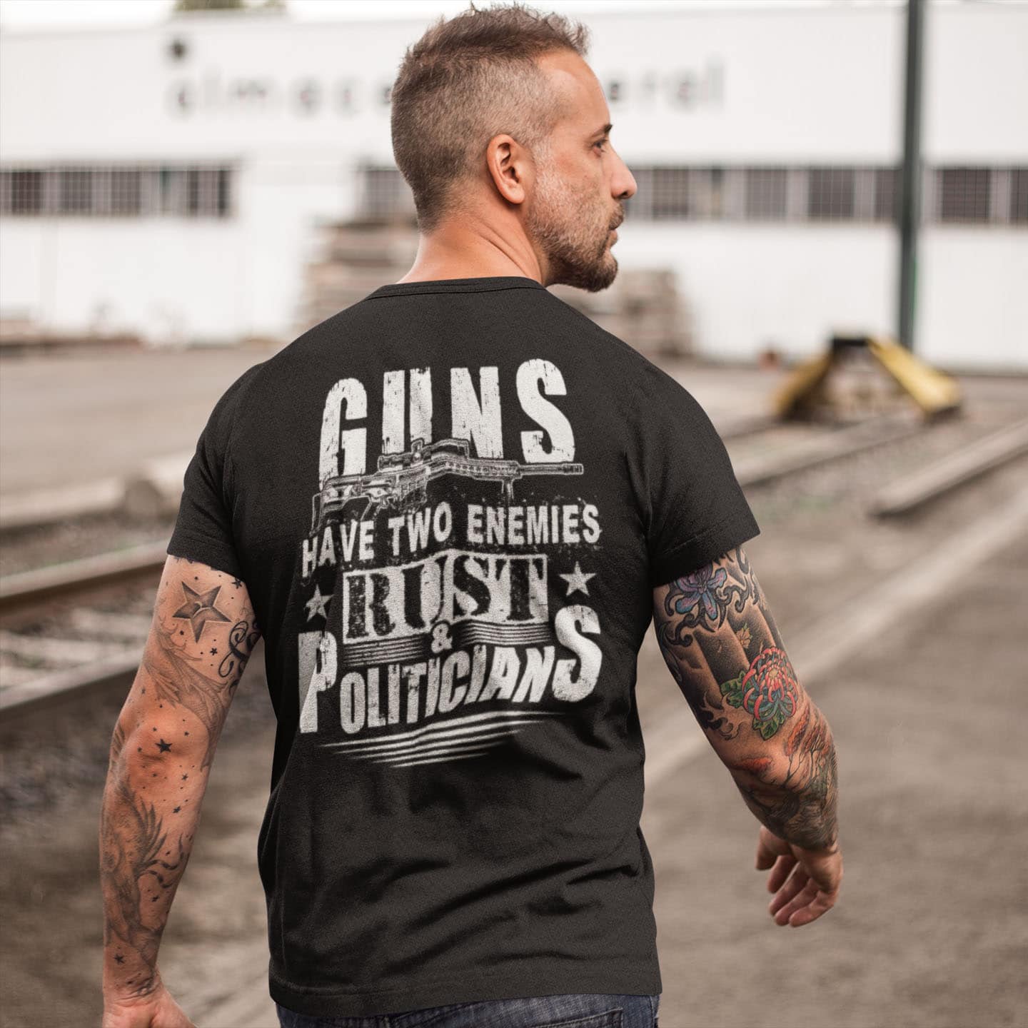 Guns Have Two Enemies Rust And Politicians Print On Back T-Shirt Only – Pro Gun Plain Front Shirt
