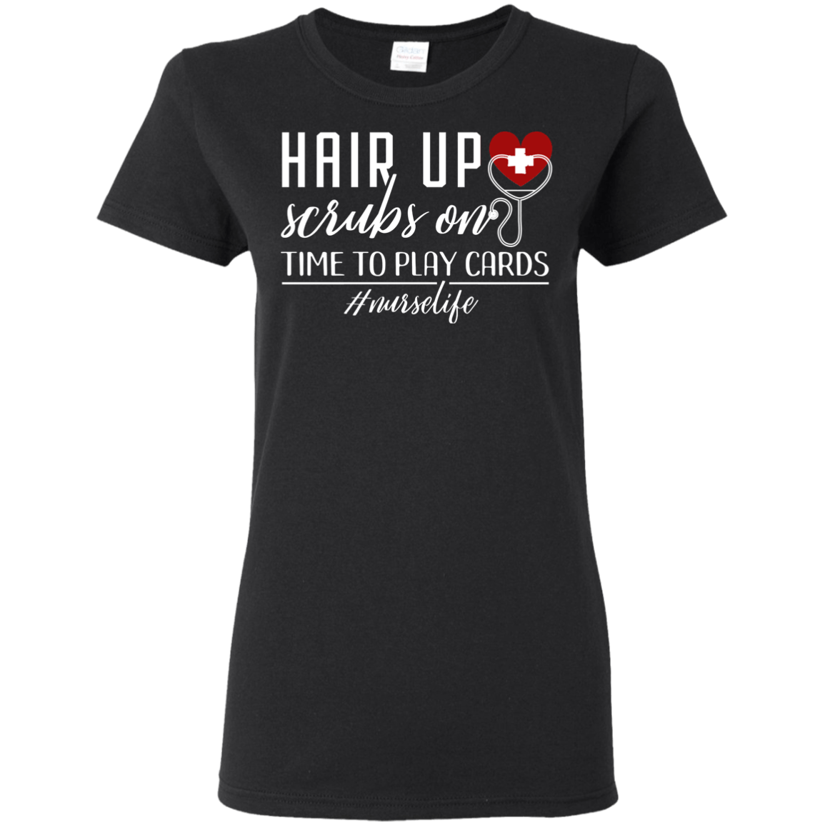 Hair Up Scrubs On Time-To-Play Cards #Nurselife Ladies T-Shirt – Premium Ladies Triblend Dolman Sleeve Shirt