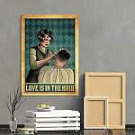 Let’s Shop Love Is In The Hair Framed Canvas Prints – Hairdresser Unframed Poster – Funny Hairstylist Home Decor Wall Art!