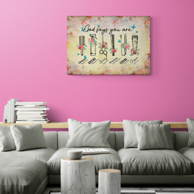 Let’s Shop Hairstylist God Says You Are Unique Special Lovely Precious Strong Framed Canvas – Hairdresser Unframed Poster!