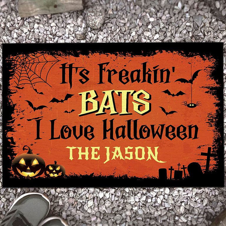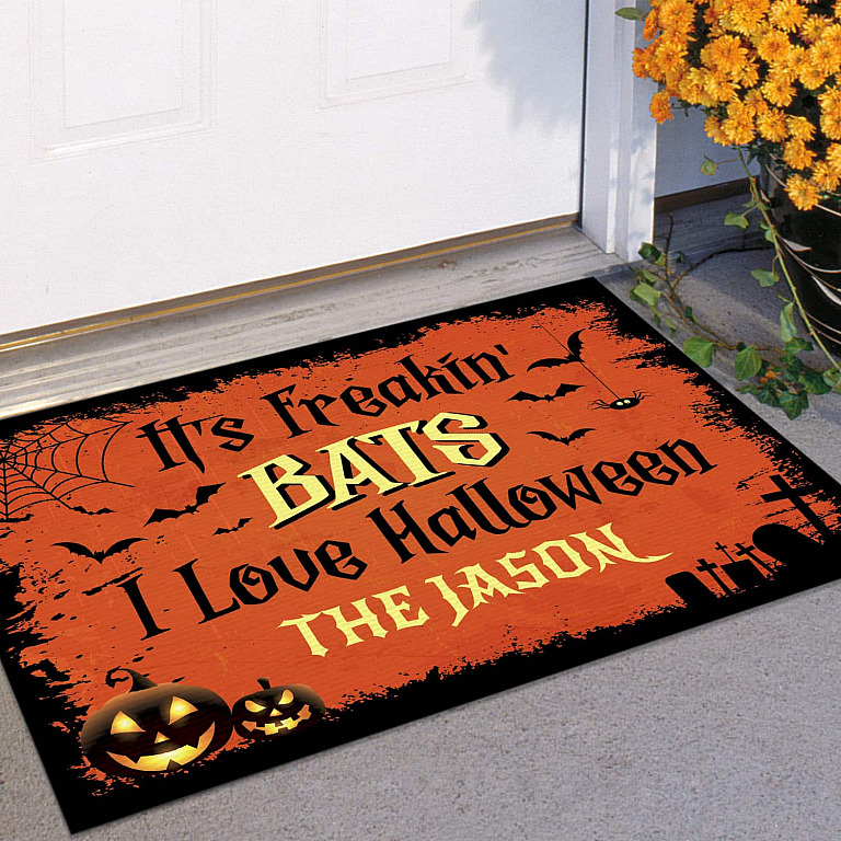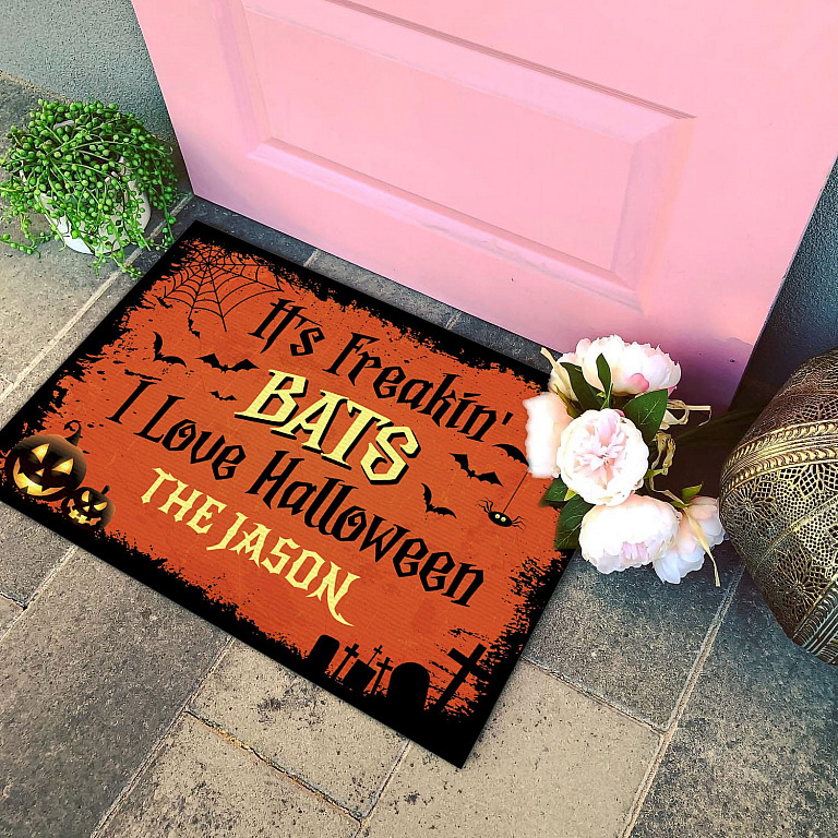 Let’s Shop Custom Family Name It’s Freakin’ Bats I Love Halloween House Doormat – Halloween Outdoor Indoor Doormat!