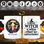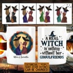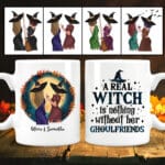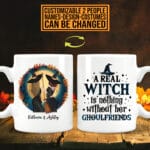 Let’s Shop Personalized A Real Witch Is Nothing Without Her Ghoulfriends Bestie Halloween Print On 2 Sides Ceramic Coffee Mug!