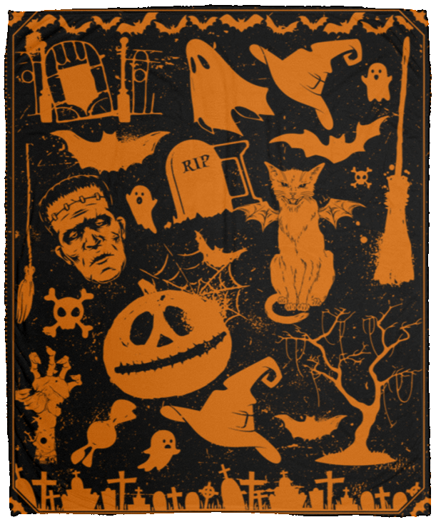 Shop Horror Ghost Pumpkin Bats Haunted Print Festival Fleece Blanket – Premium Sherpa Blanket.