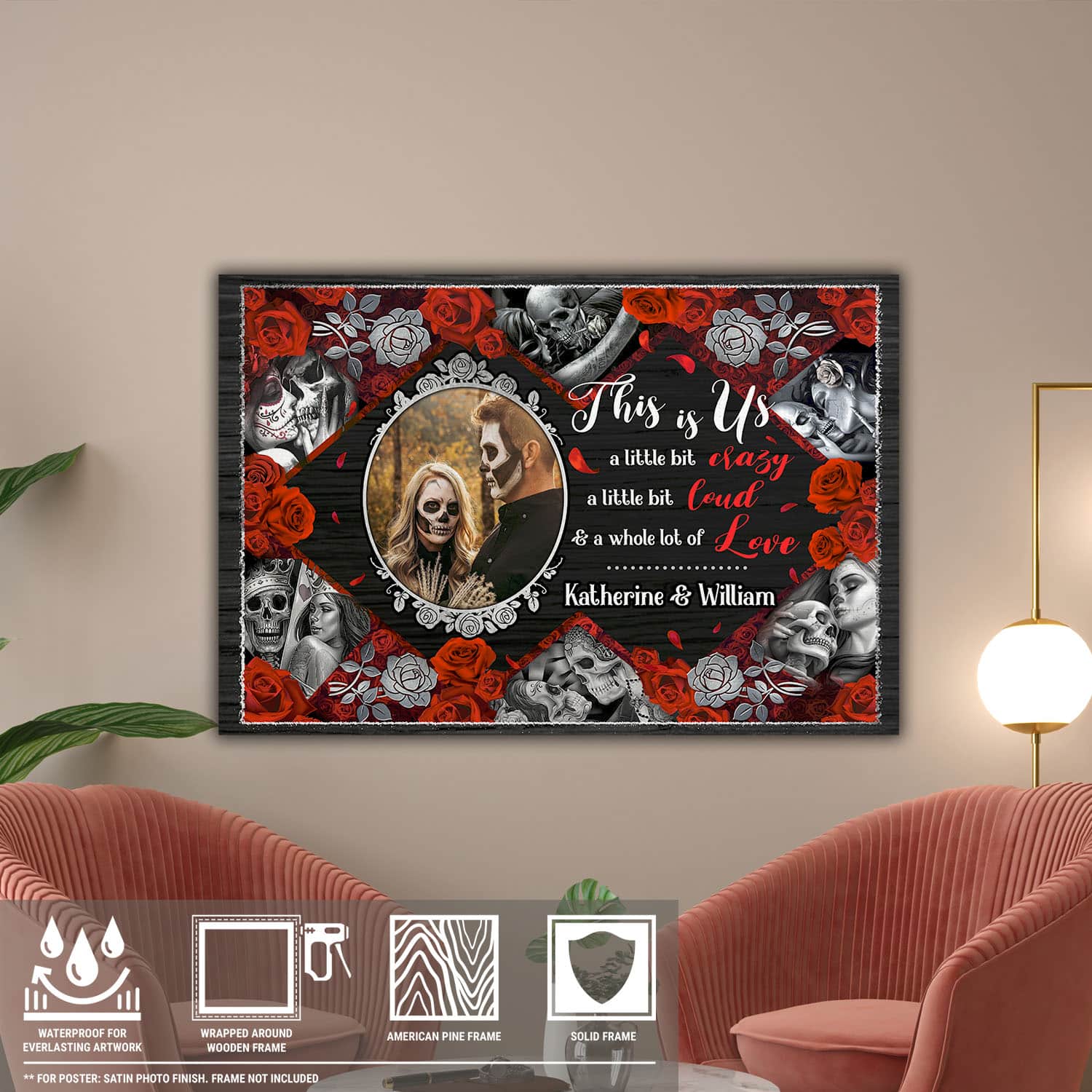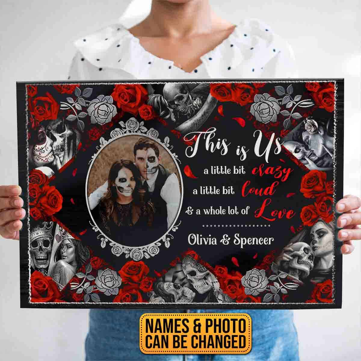 Let’s Shop Custom Photo Halloween Couple Framed Canvas – This Is Us A Little Bit Crazy Unframed Poster – Halloween Couple Decor!
