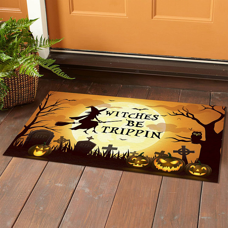 Let’s Shop Witches Be Trippin Funny Halloween Decorations Witches Doormat Entrance Decorative Doormat!