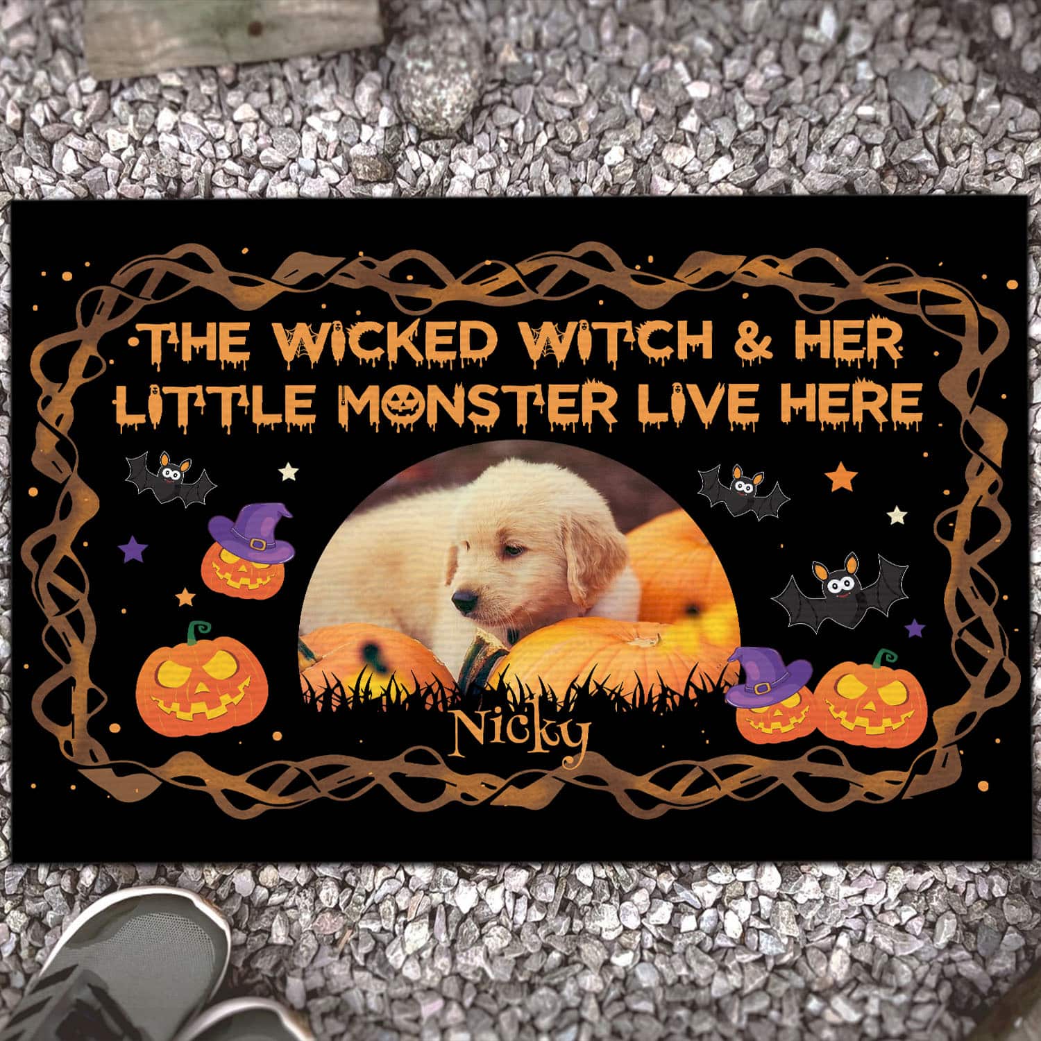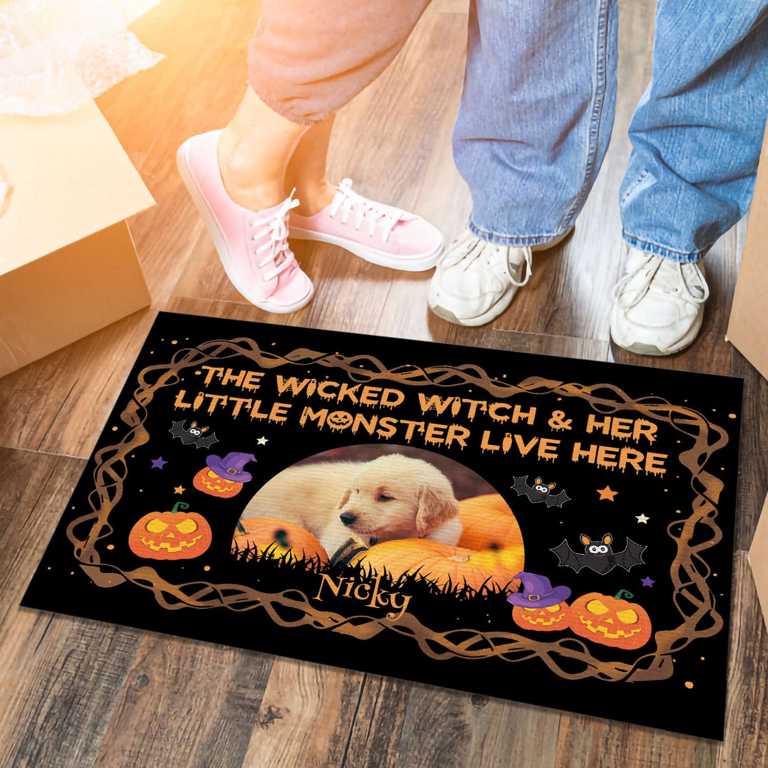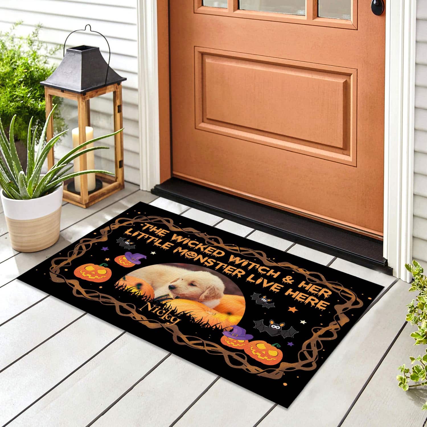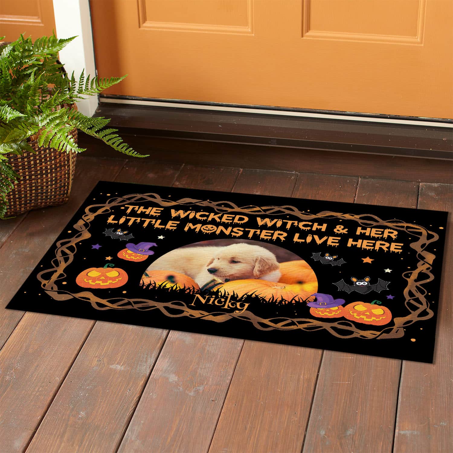 Let’s Shop Custom Photo The Wicked Witch And Her Little Monster Live Here Dog Personalized Indoor Outdoor Door Mat!