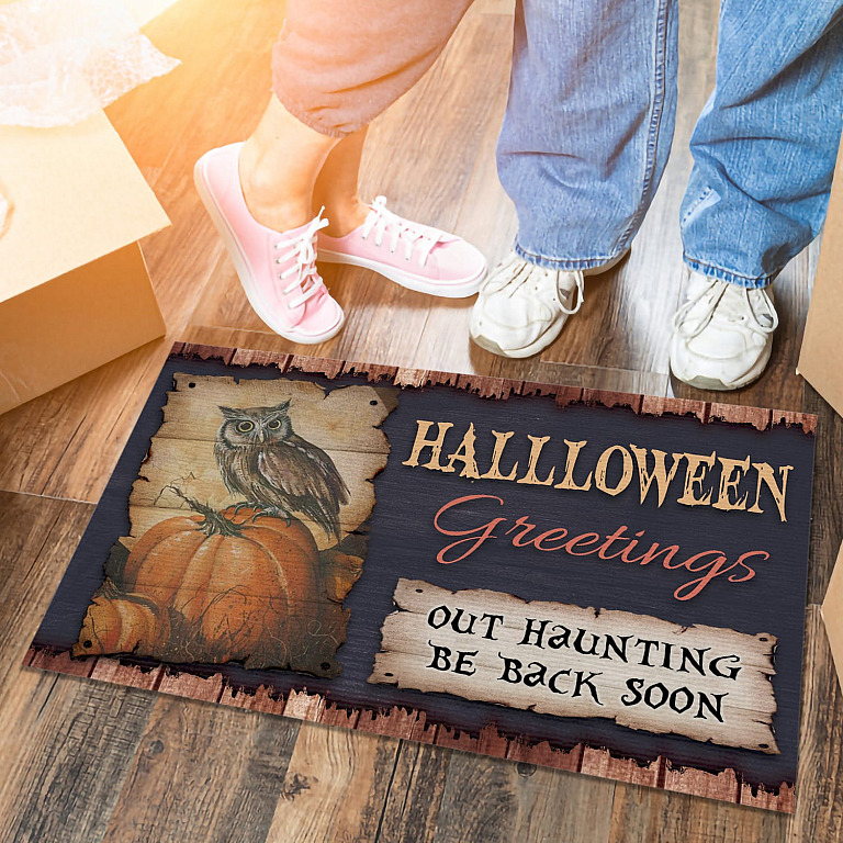 Let’s Shop Halloween Greetings Out Haunting Be Back Soon Funny Halloween Indoor Outdoor Doormat!