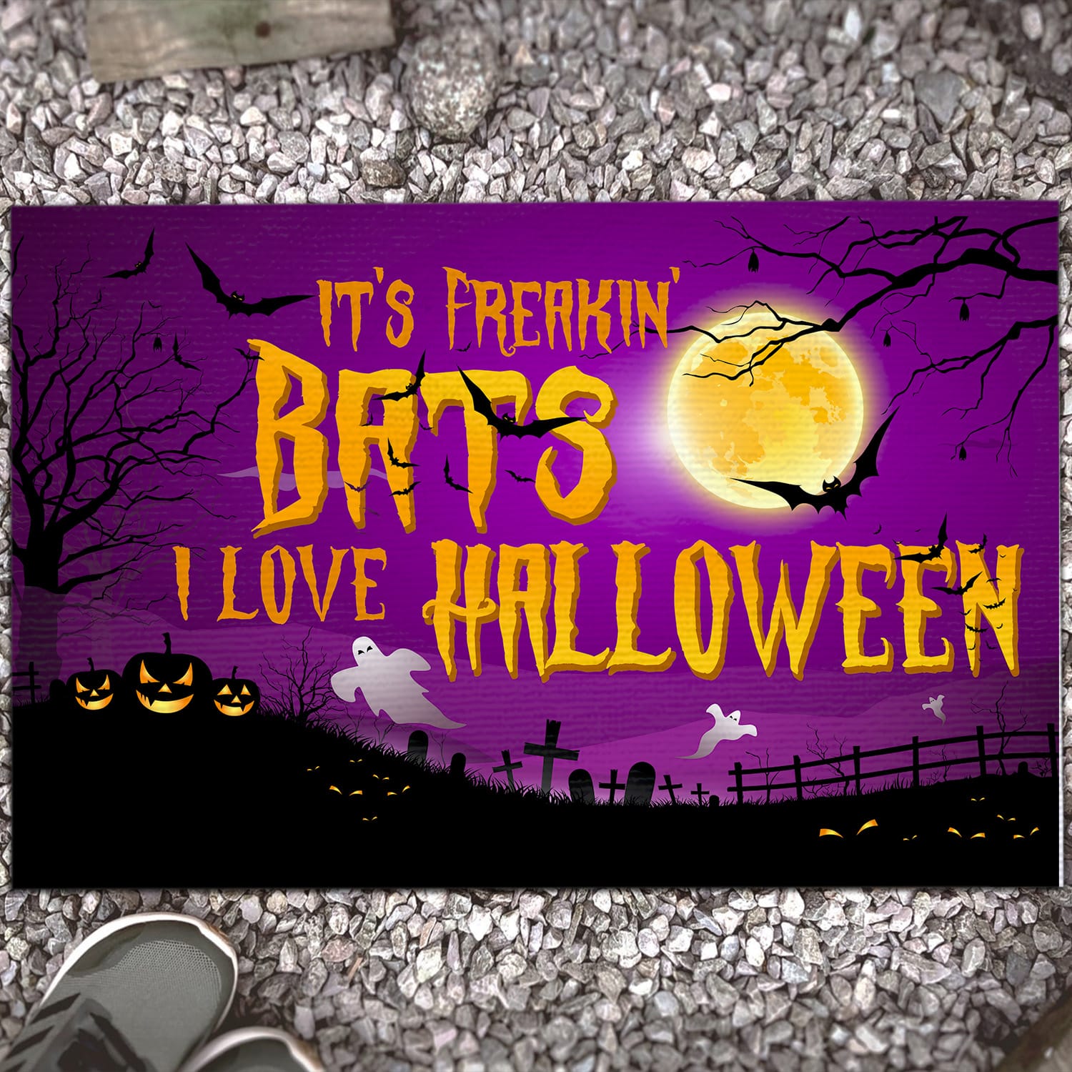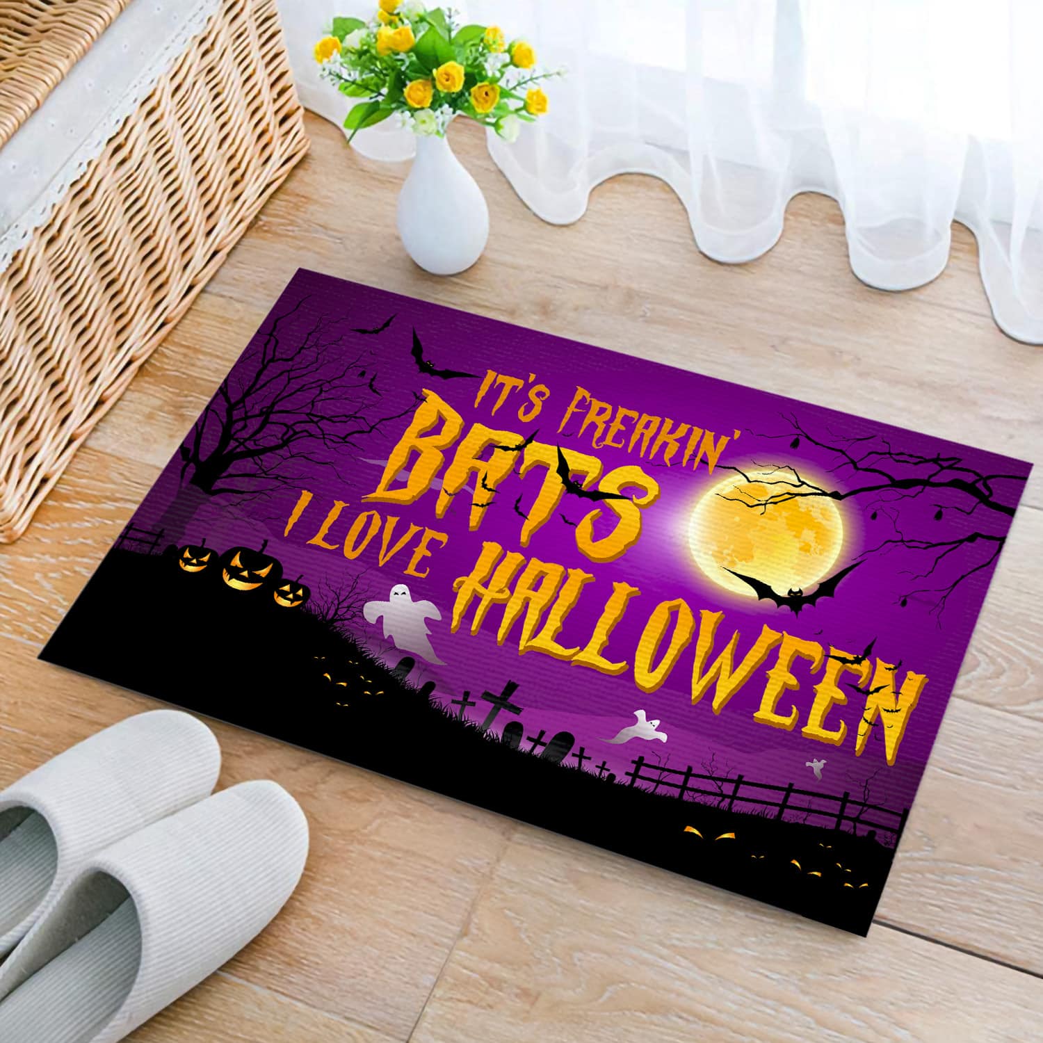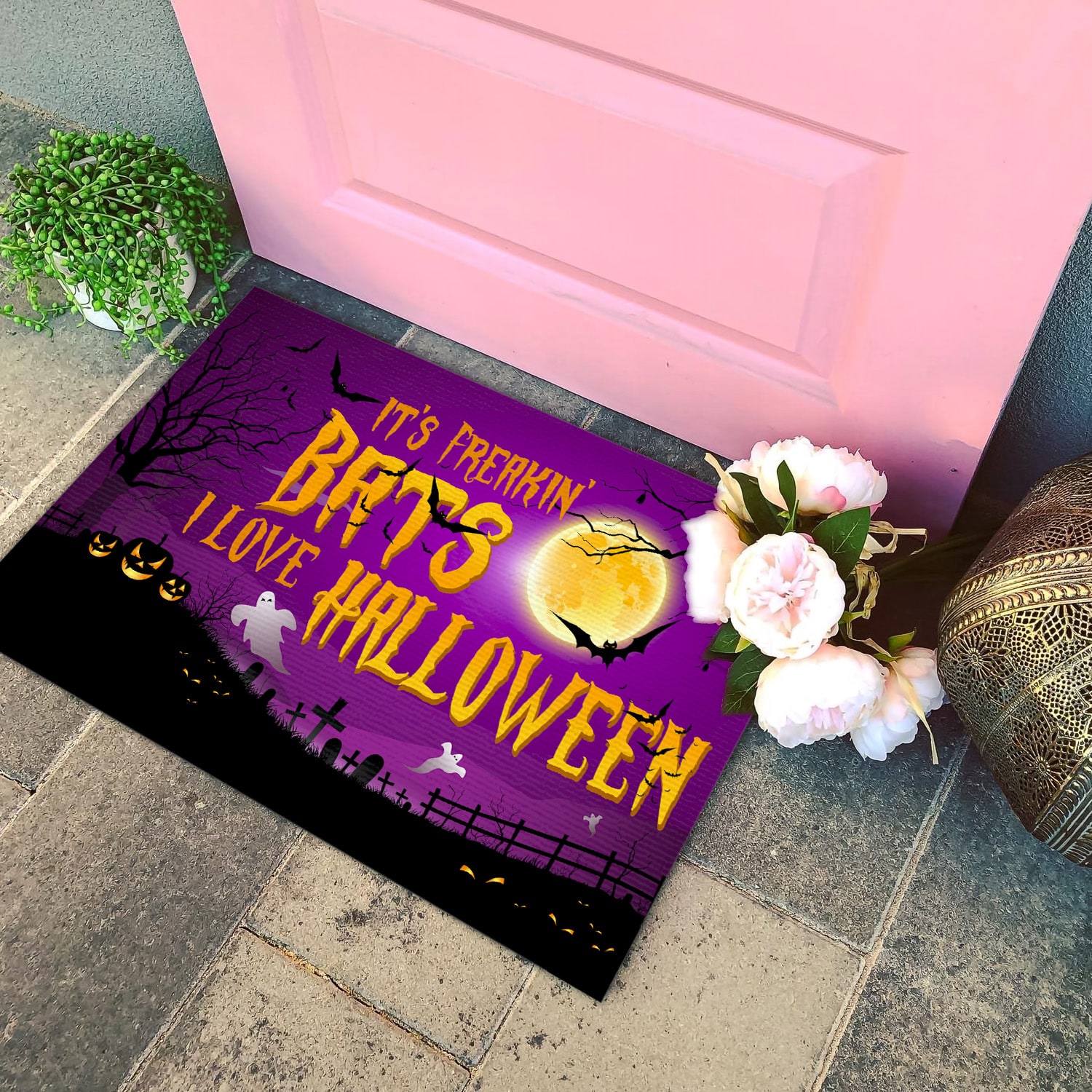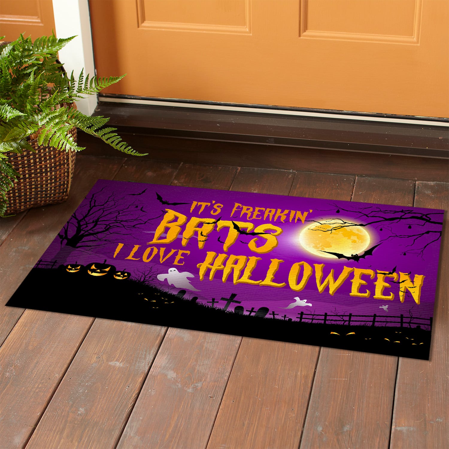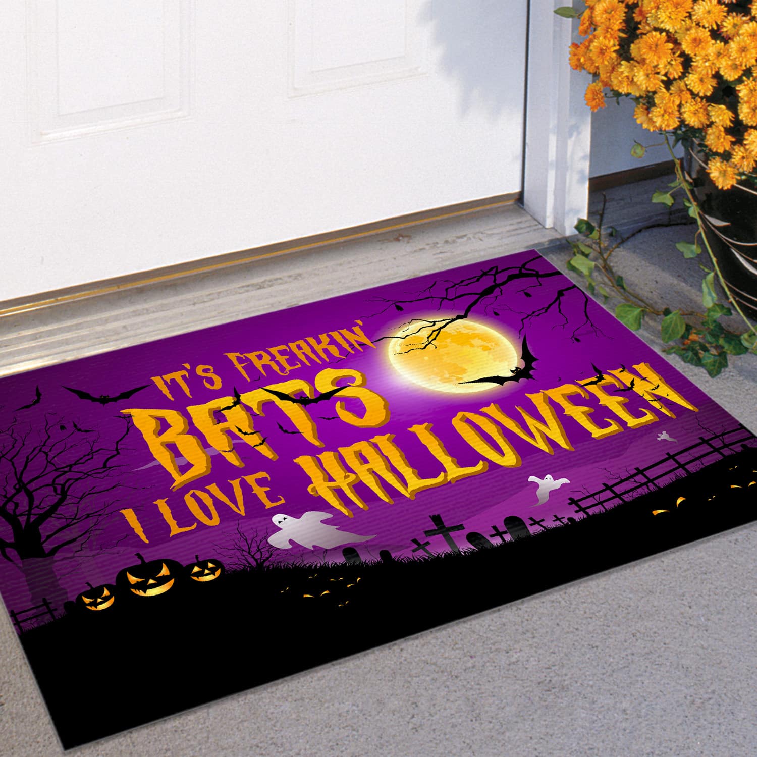 Let’s Shop It’s Freakin’ Bats I Love Halloween Indoor Outdoor Doormat – Halloween Doormat!