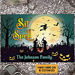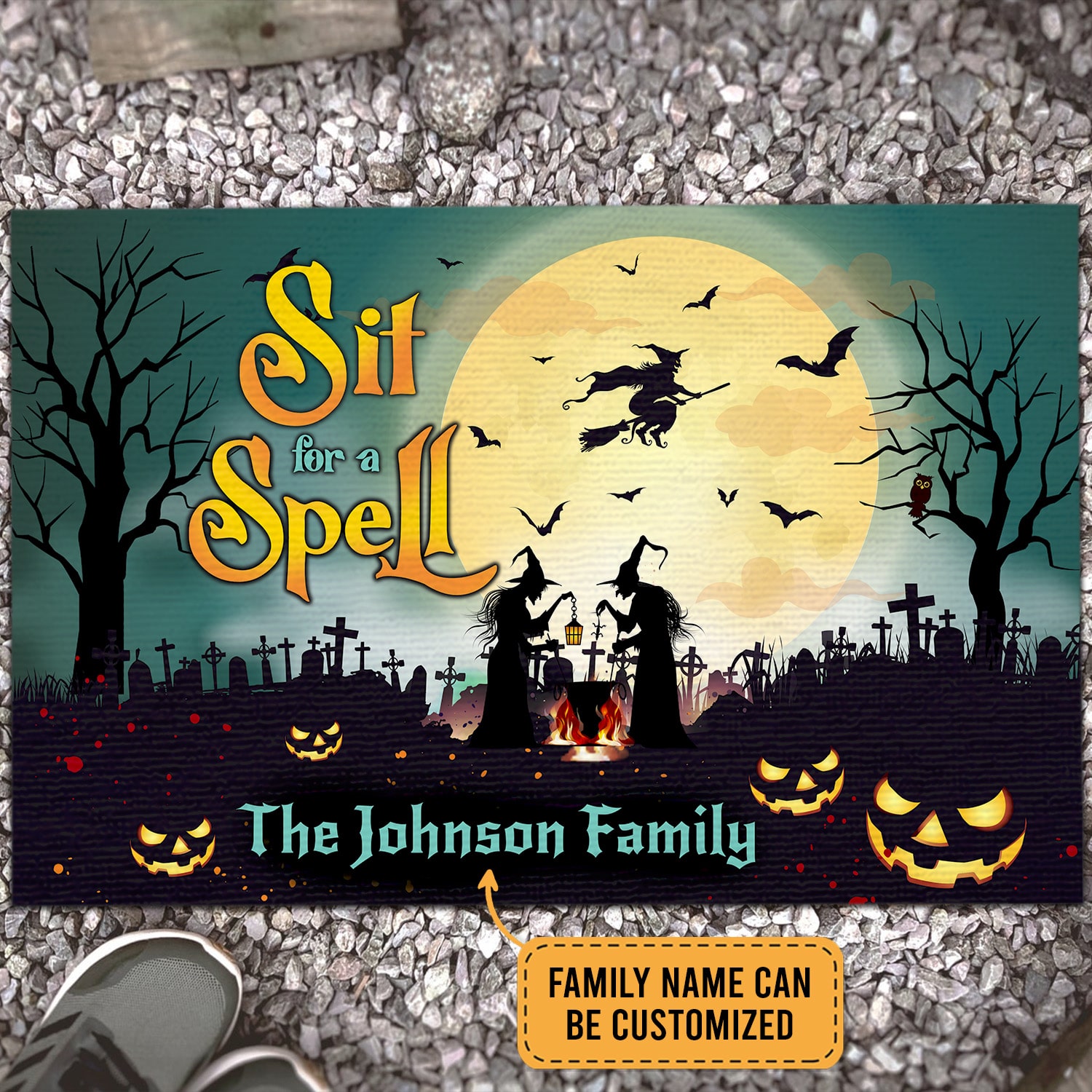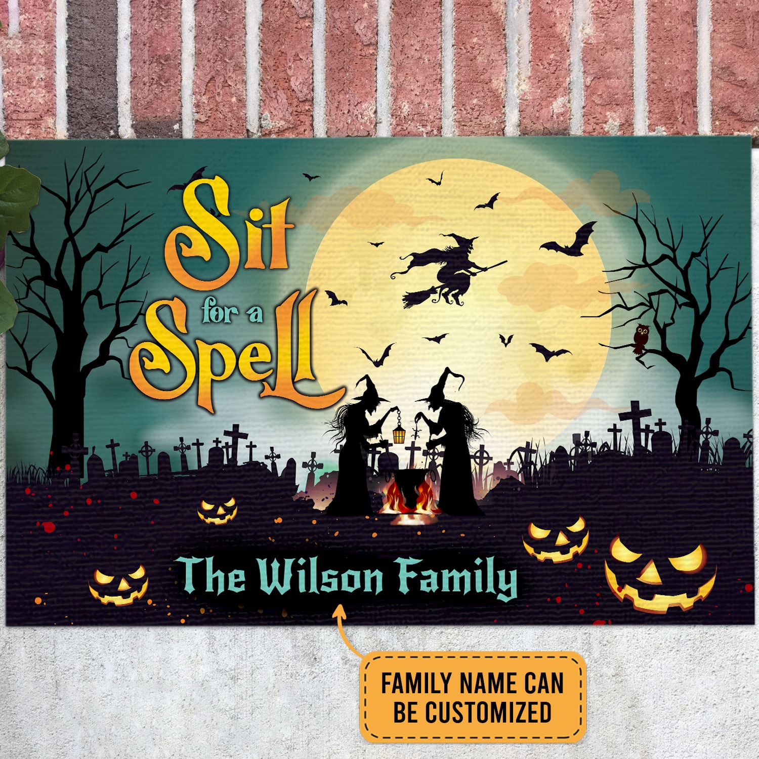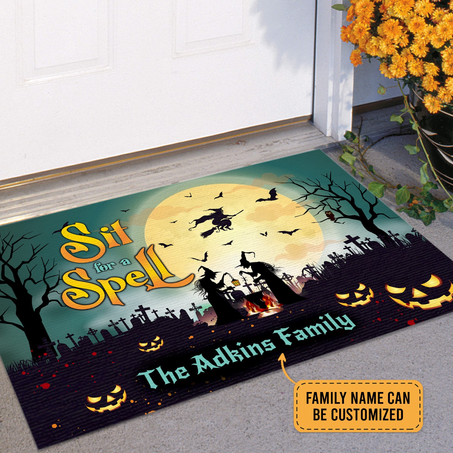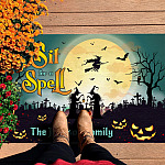 Let’s Shop Personalized Halloween Decorations Sit For A Spell Indoor Outdoor Doormat!