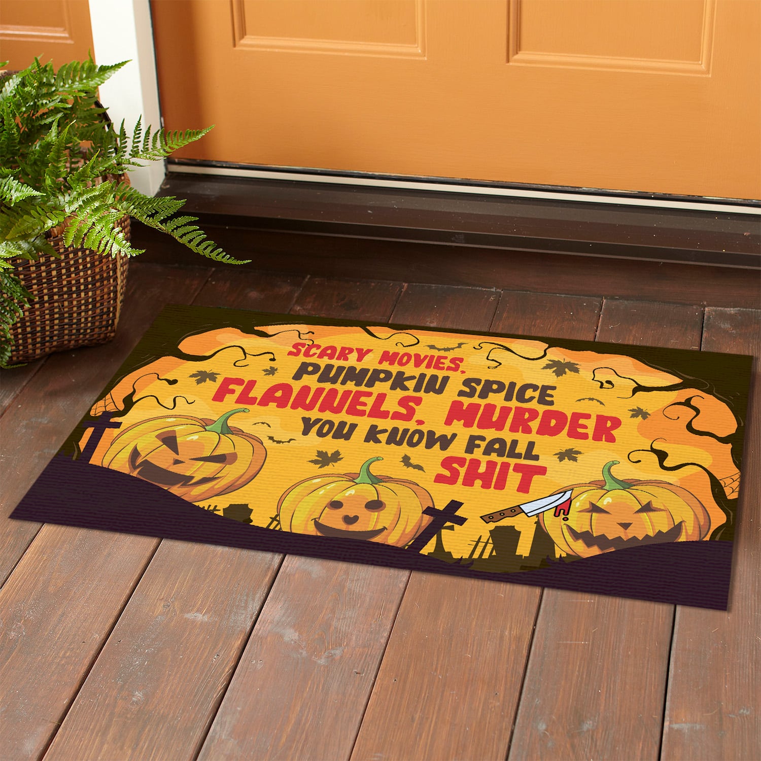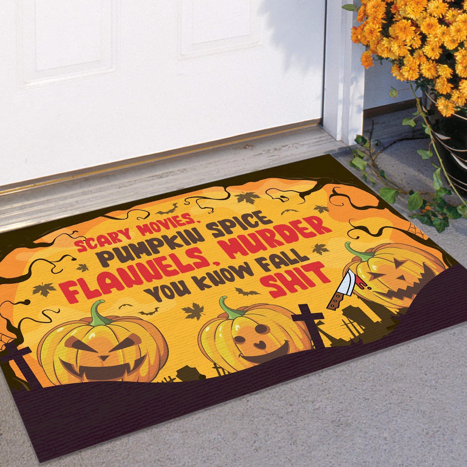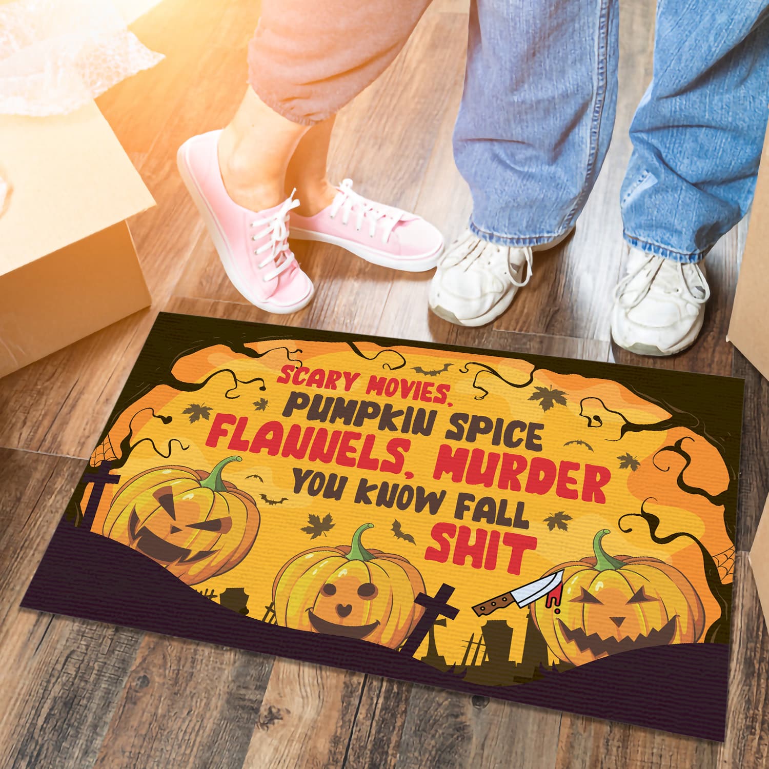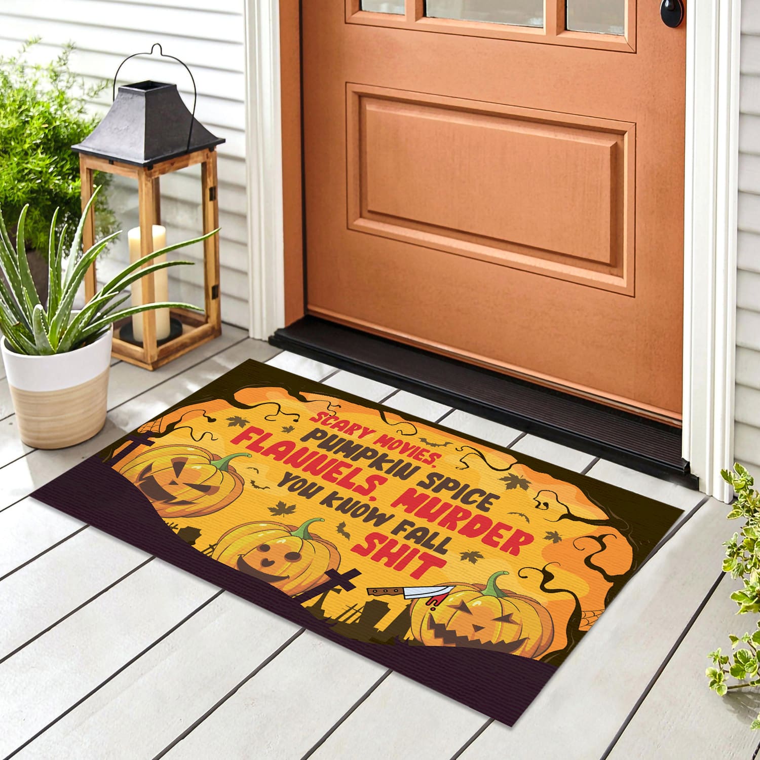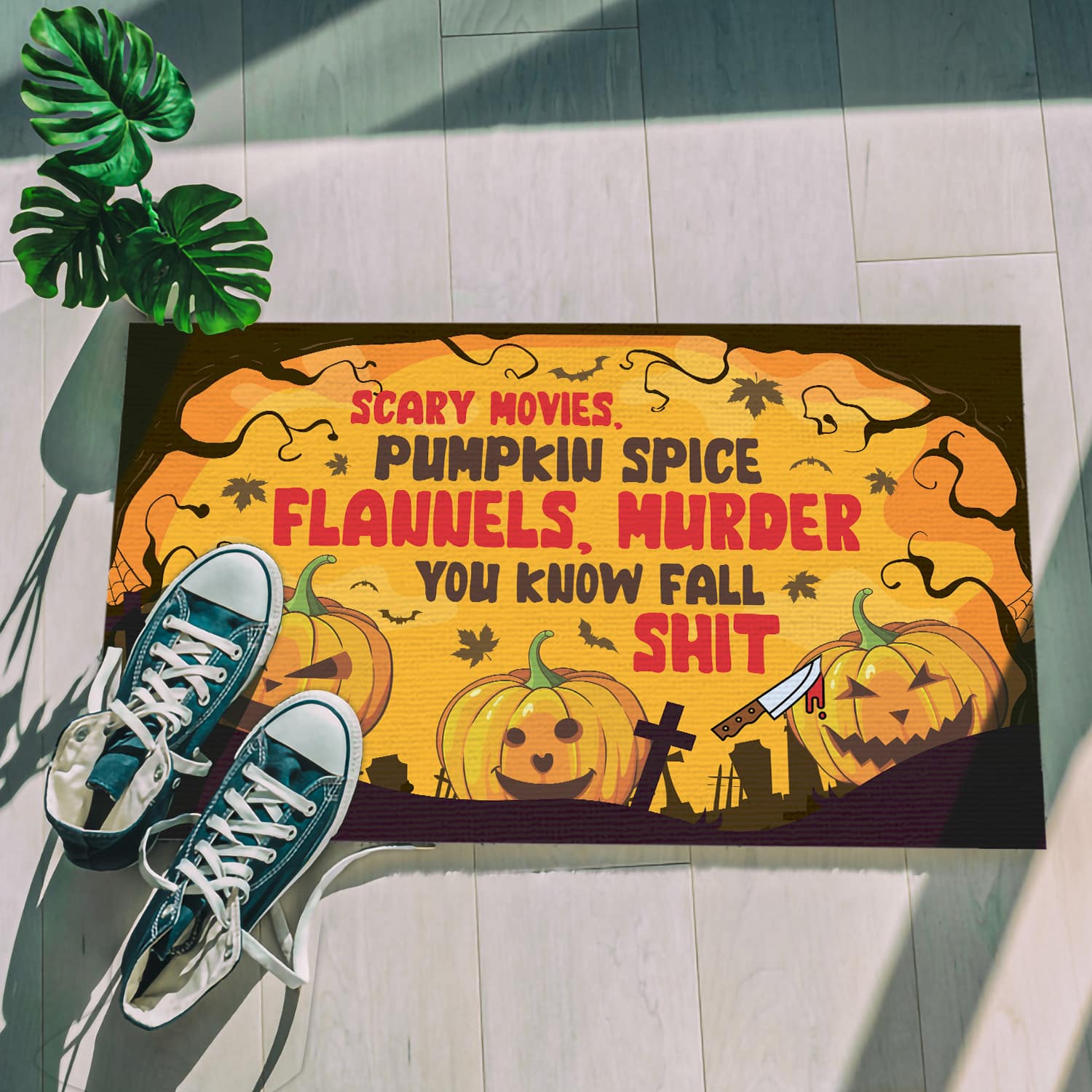 Let’s Shop Scary Movies Pumpkin Spice Flannels Murder You Know Fall Shit Indoor Outdoor Doormat!