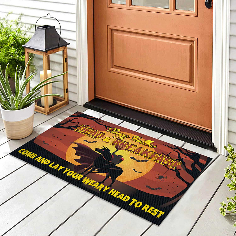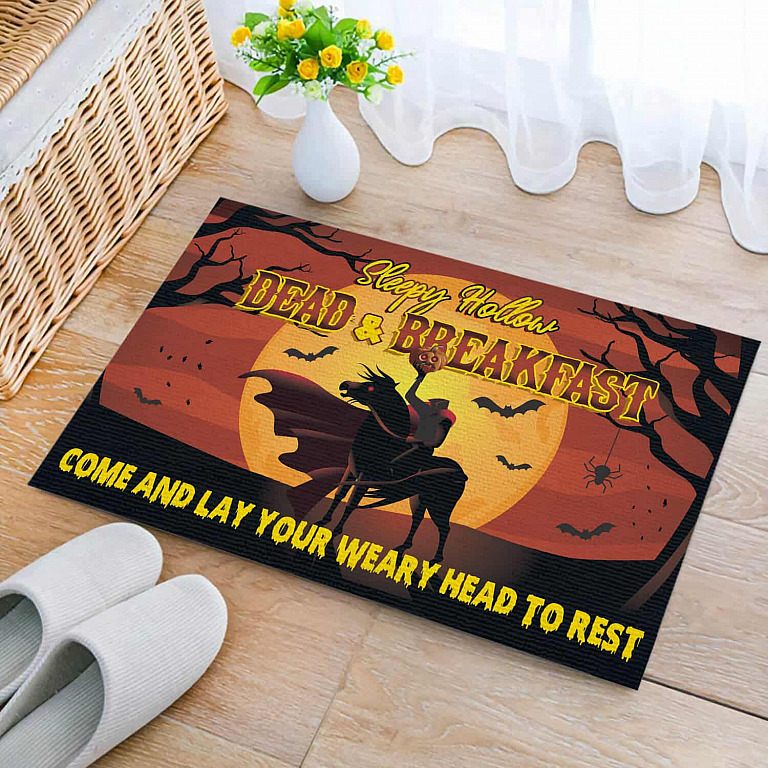 Let’s Shop Sleepy Hollow Dead and Breakfast Come and Lay Your Weary Head Indoor Outdoor Decorative Doormat!