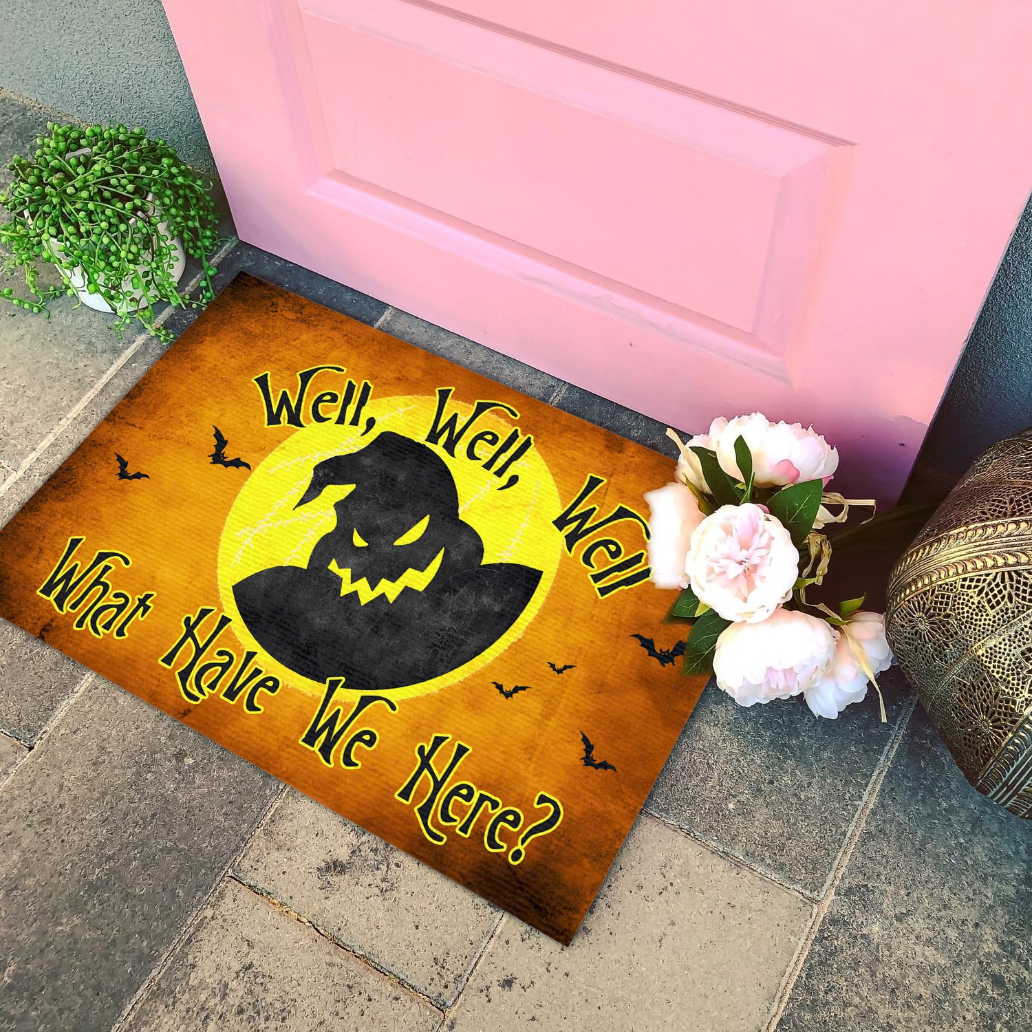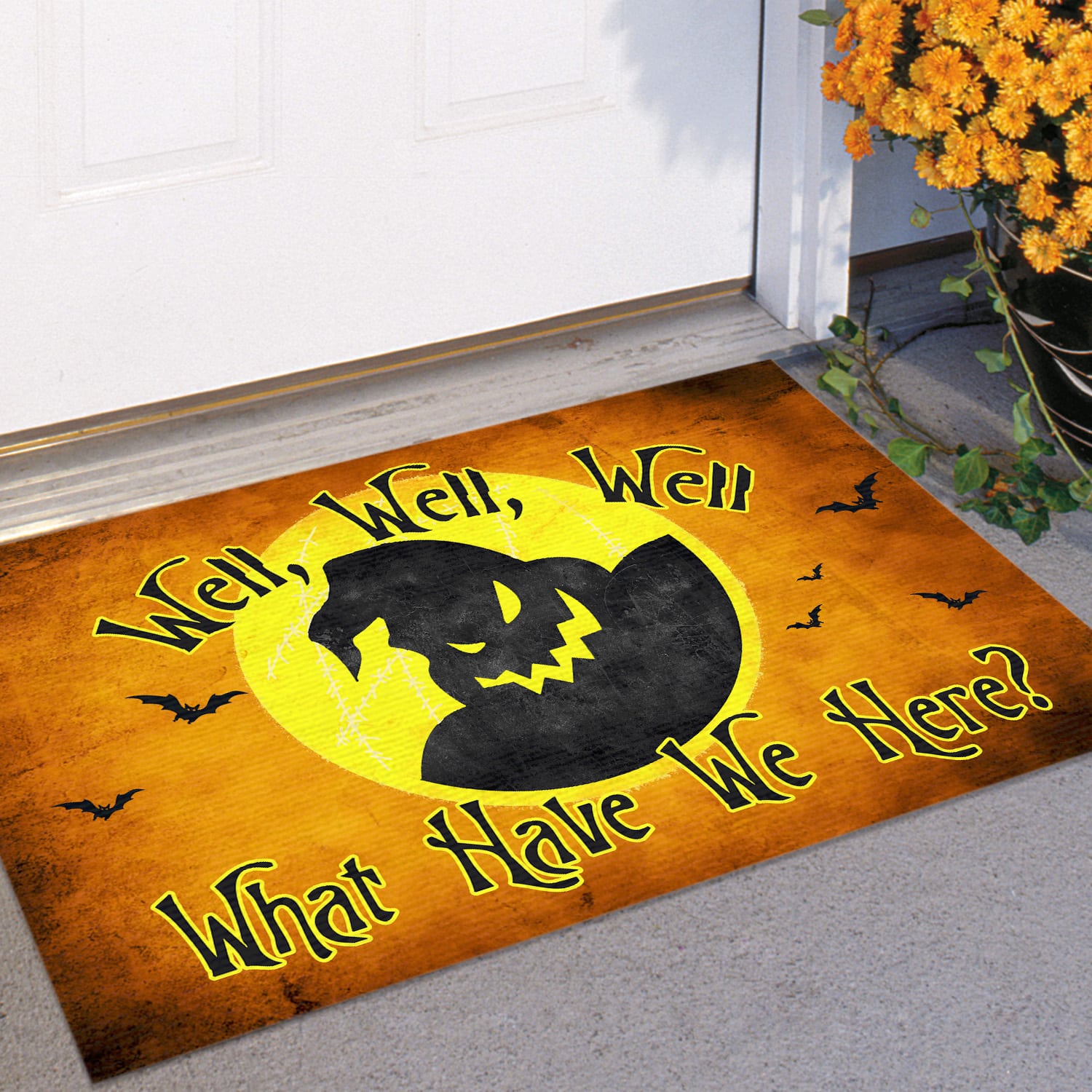 Let’s Shop Well Well Well What Have We Here Door Mat – Oogie Boogie Nightmare Before Christmas Doormat – Welcome Mat – Funny Halloween Decoration!