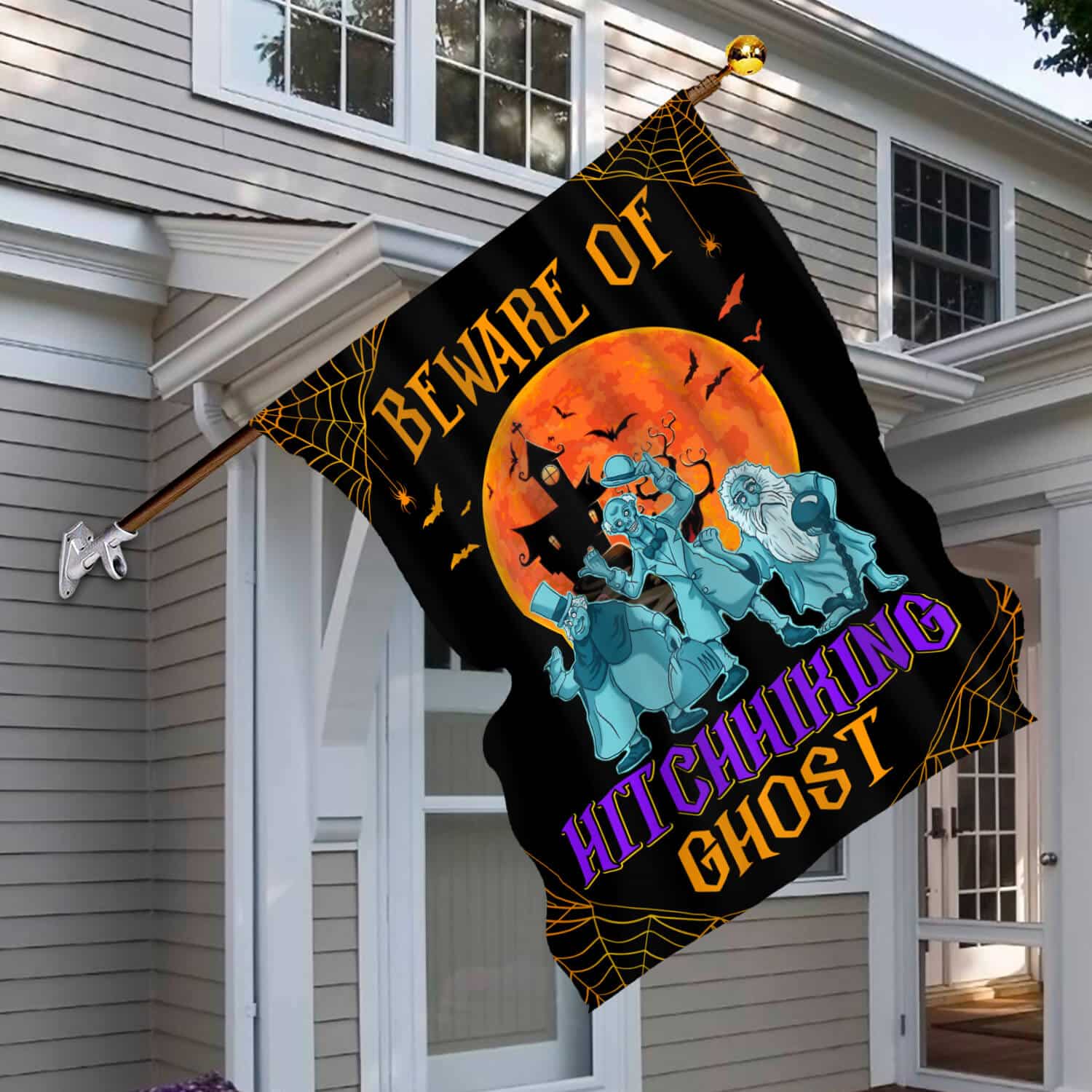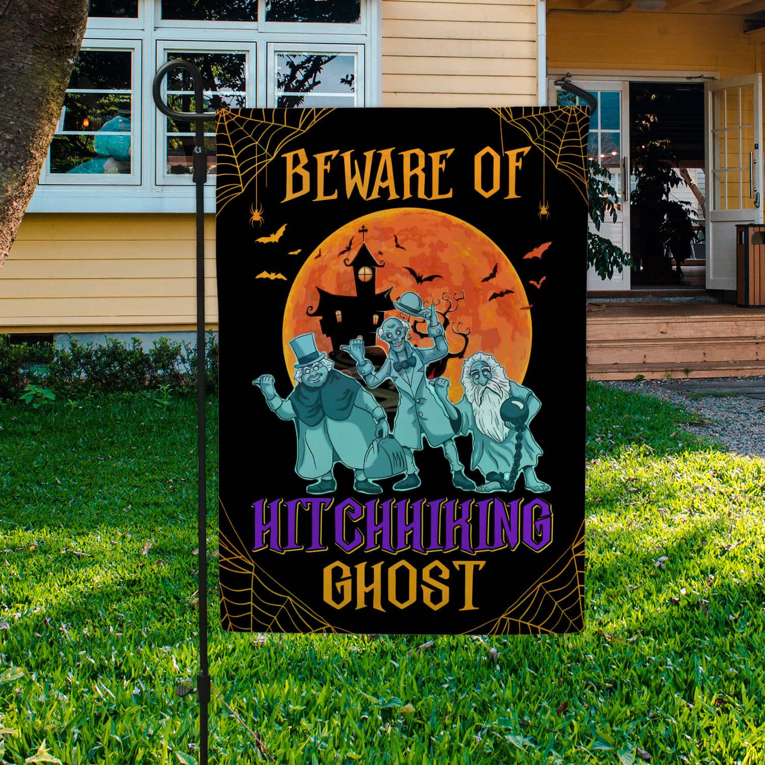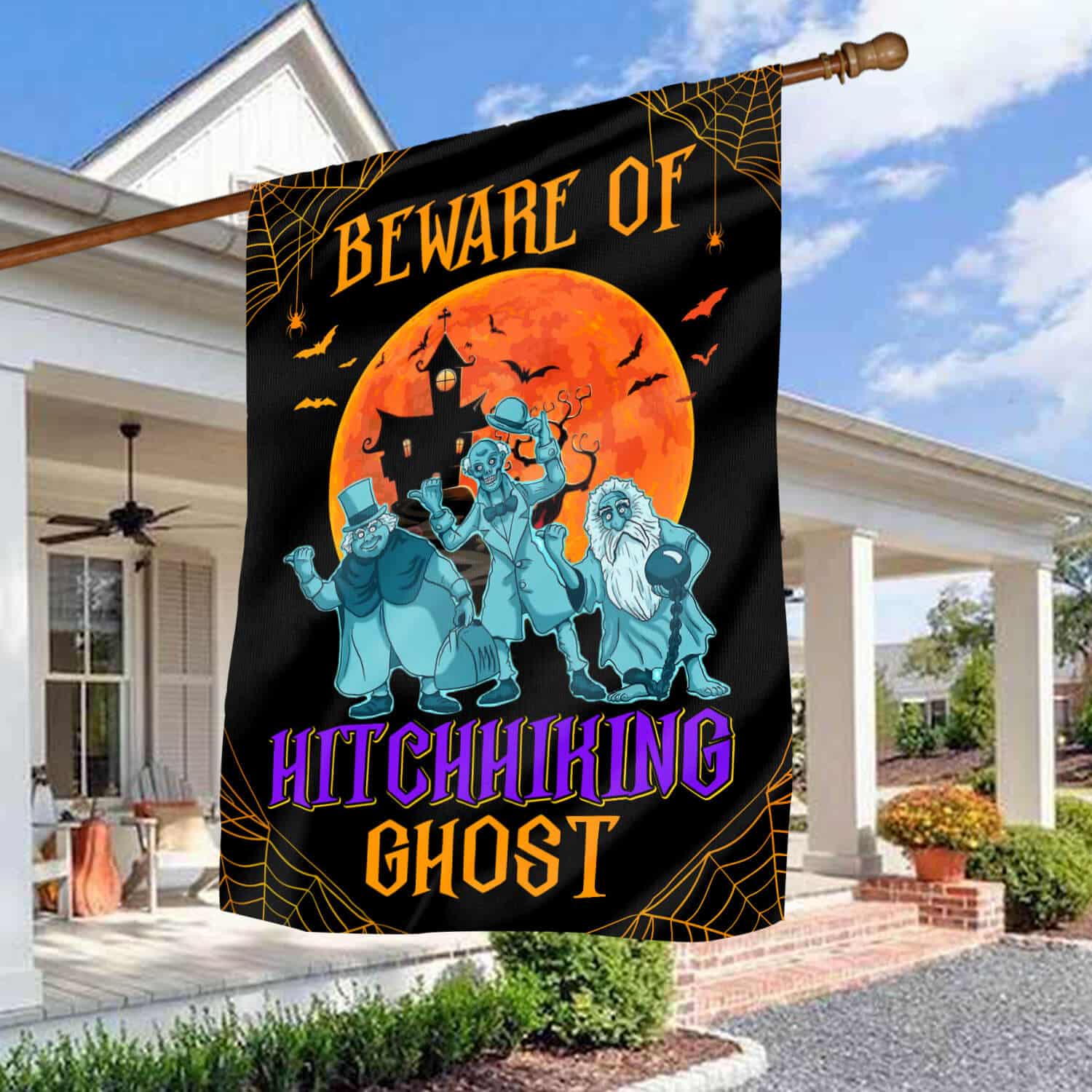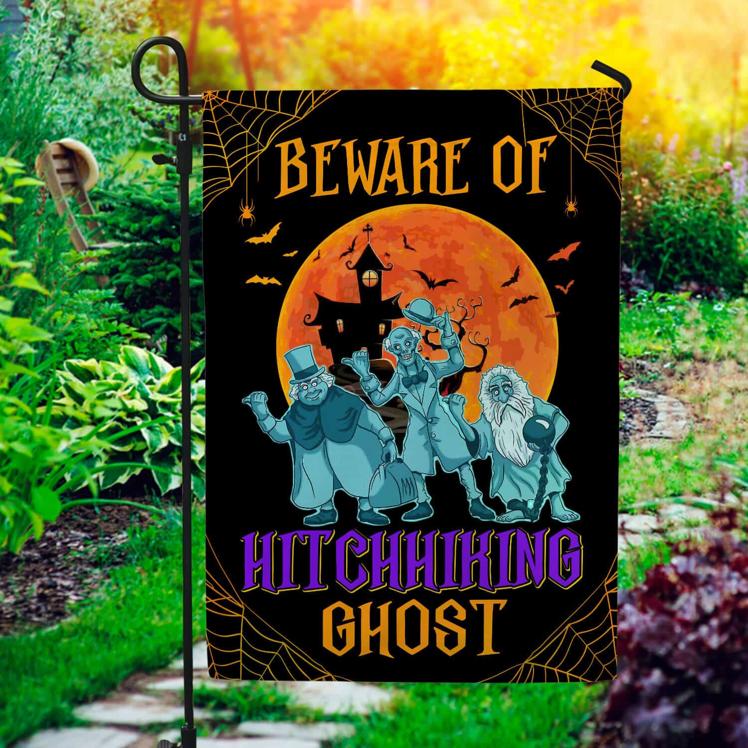 Let’s Shop Beware of Hitchhiking Ghosts Garden Flag – Halloween Flag – the Haunted Mansion Flag!