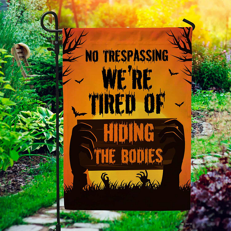 Let’s Shop No Trespassing We Are Tired Of Hiding The Bodies Halloween Graveyard Garden Flag – House Flag – Wall Flag!