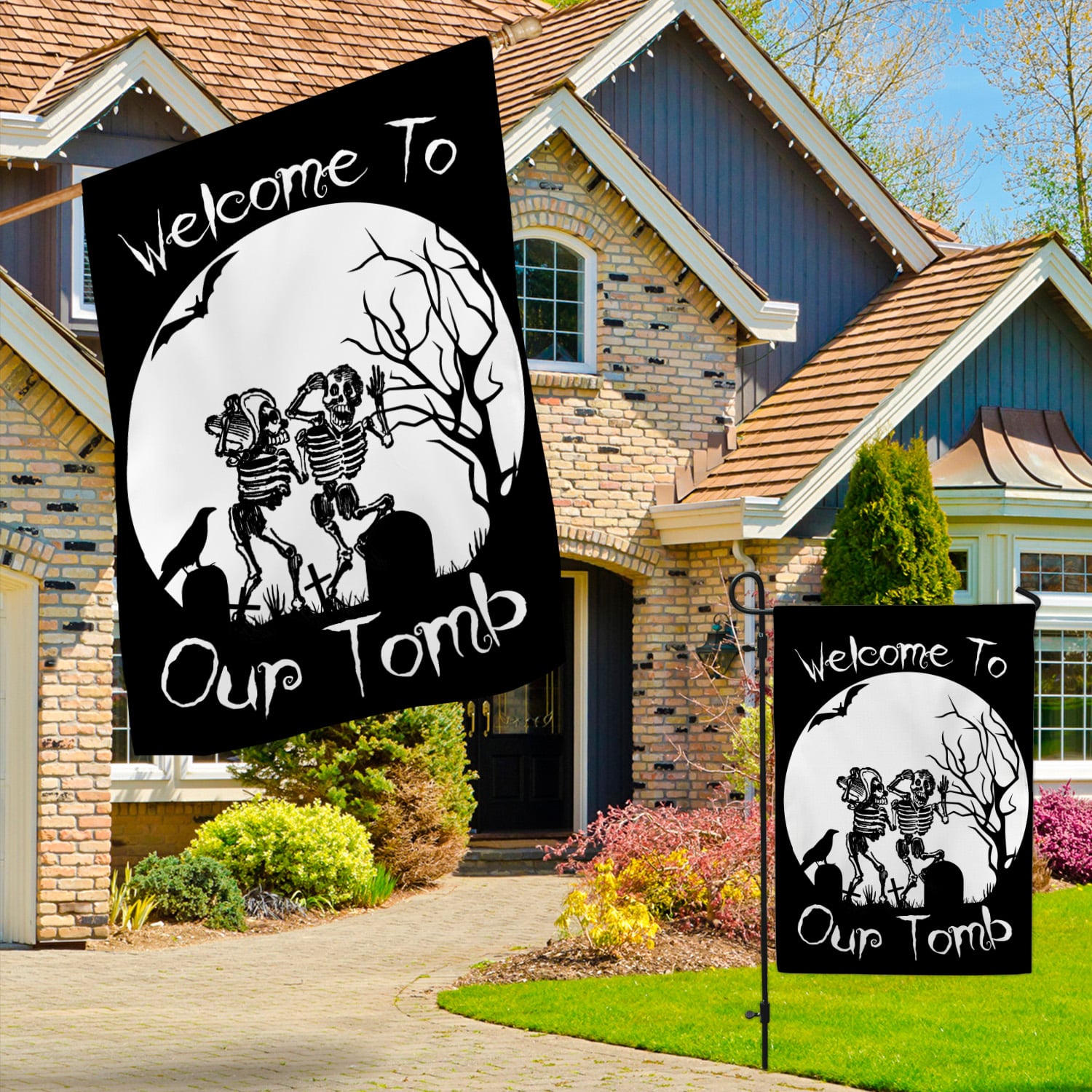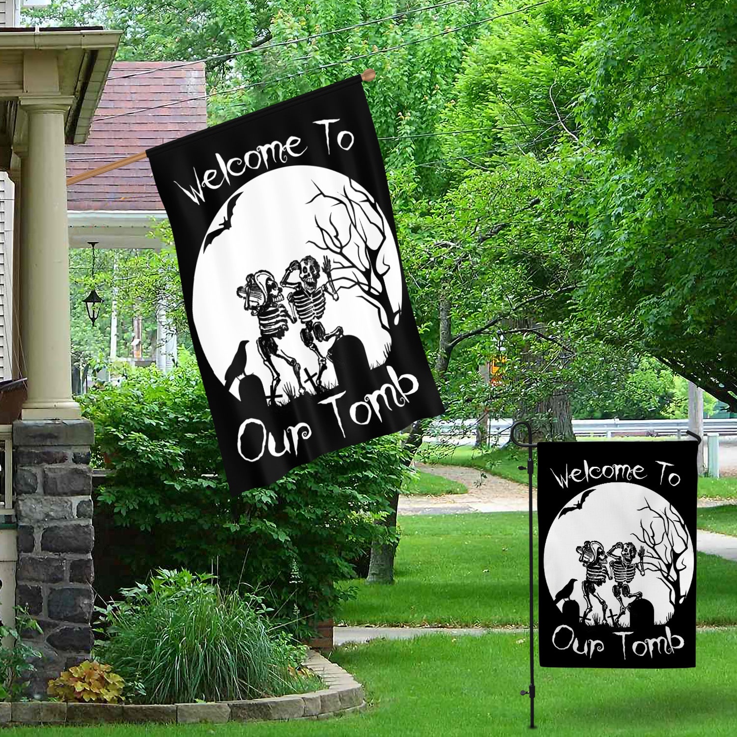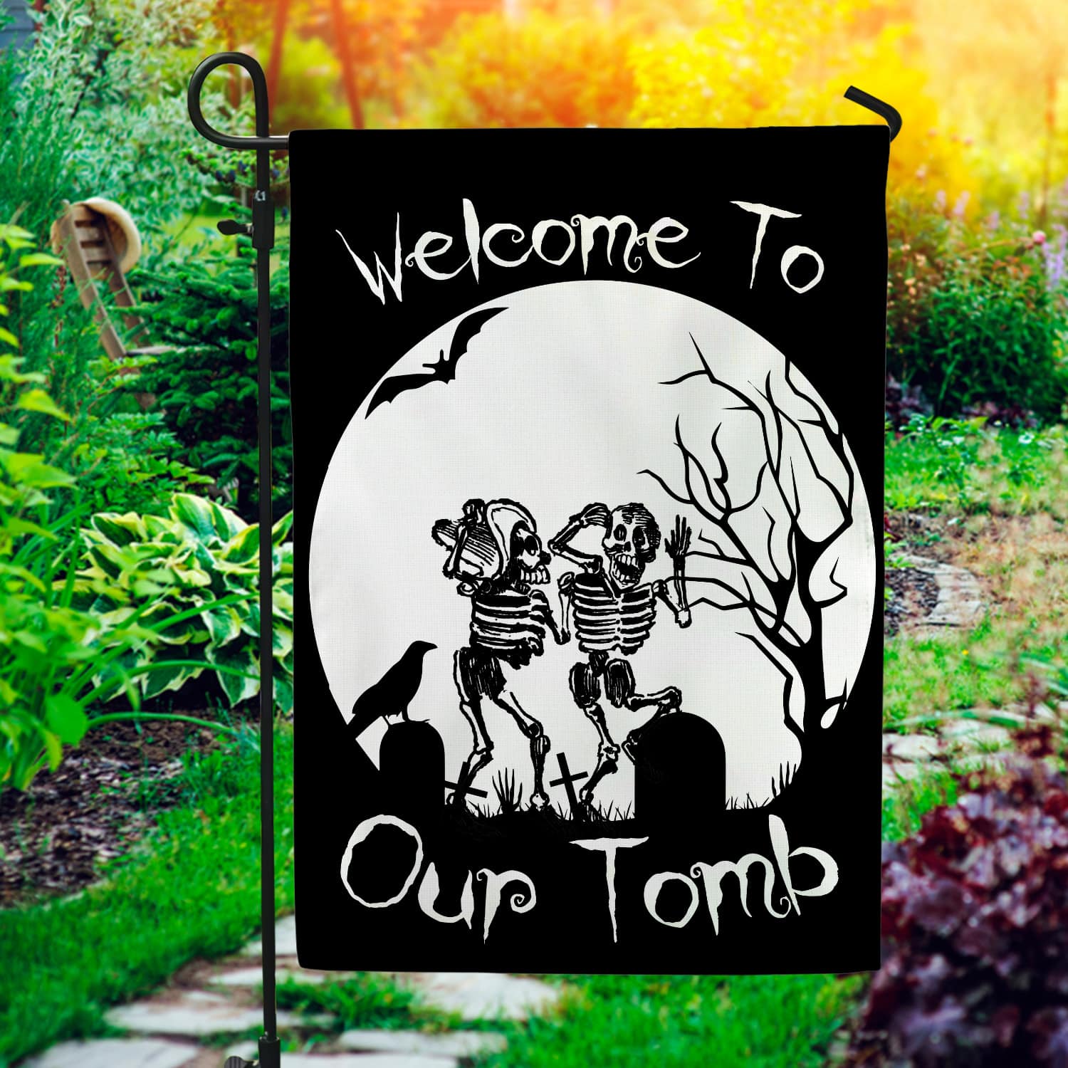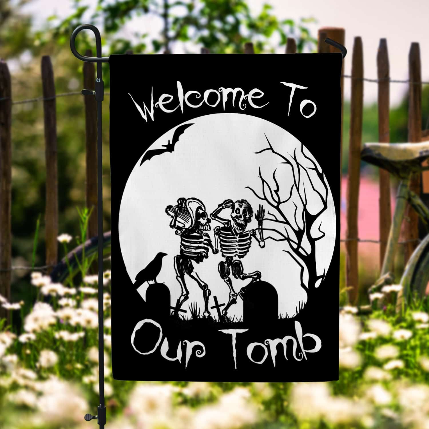 Let’s Shop Welcome To Our Tomb Garden Flag – House Flag – Halloween Flag!