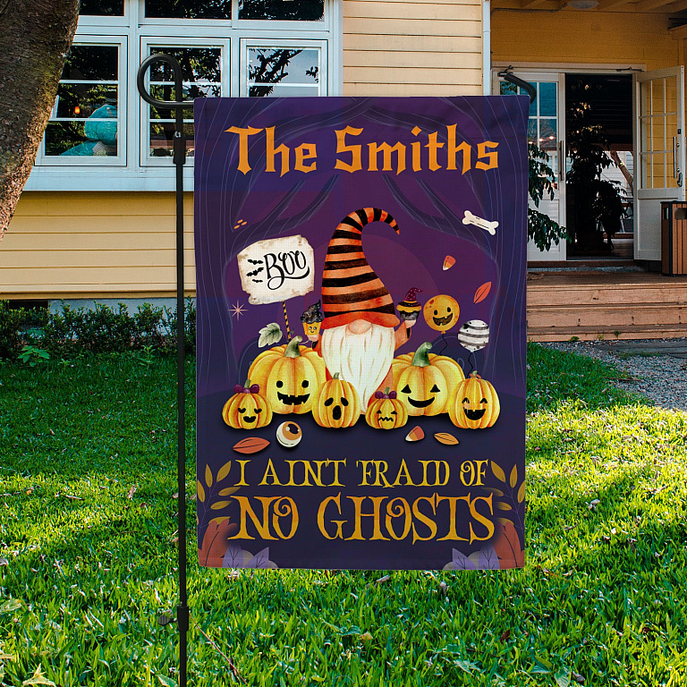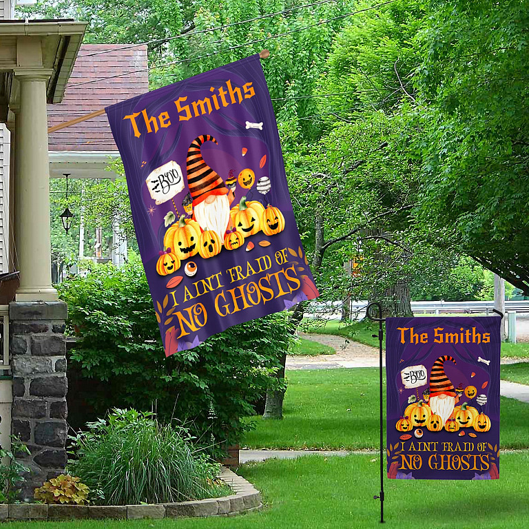 Let’s Shop I Ain’t Afraid of No Ghosts Gnome Personalized Halloween Garden Flag – House Flag – Wall Flag!