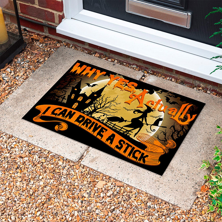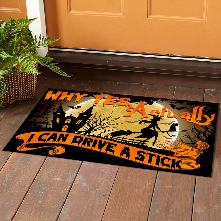 Let’s Shop Why Yes Actually I Can Drive a Stick Funny Halloween Decoration Entrance Indoor Outdoor Decorative Doormat!