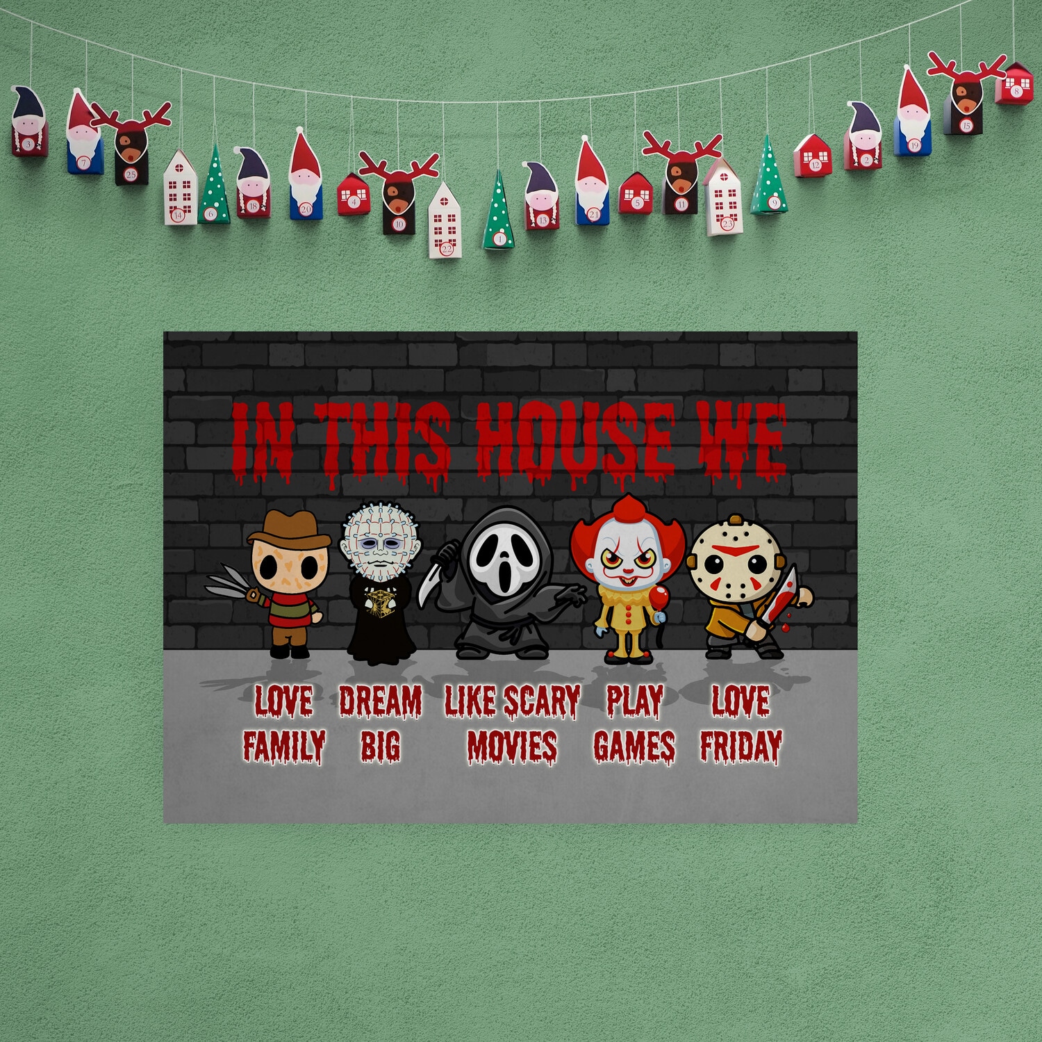 Let’s Shop Halloween in This House We Love Family Dream Big Horror Character Wrapped Framed Canvas Prints – Unframed Poster!