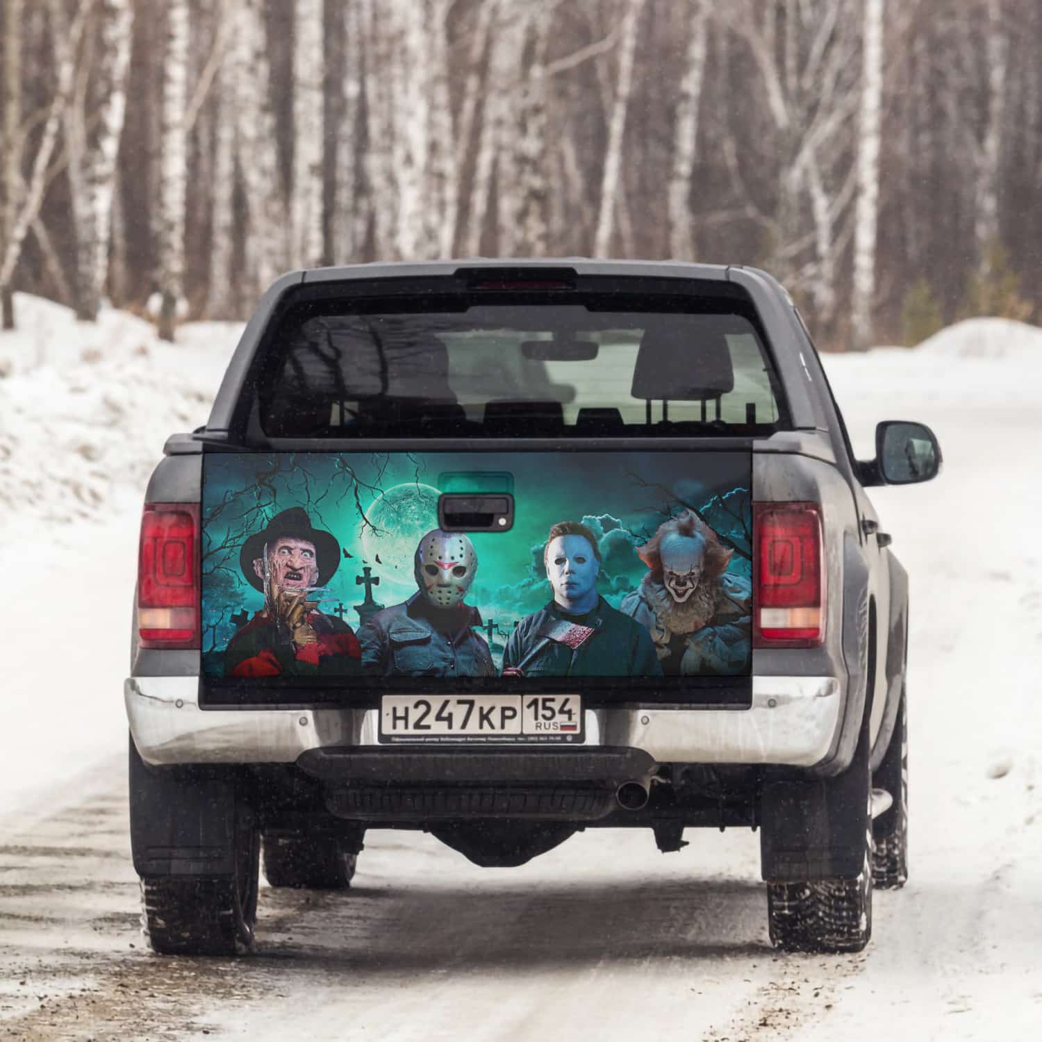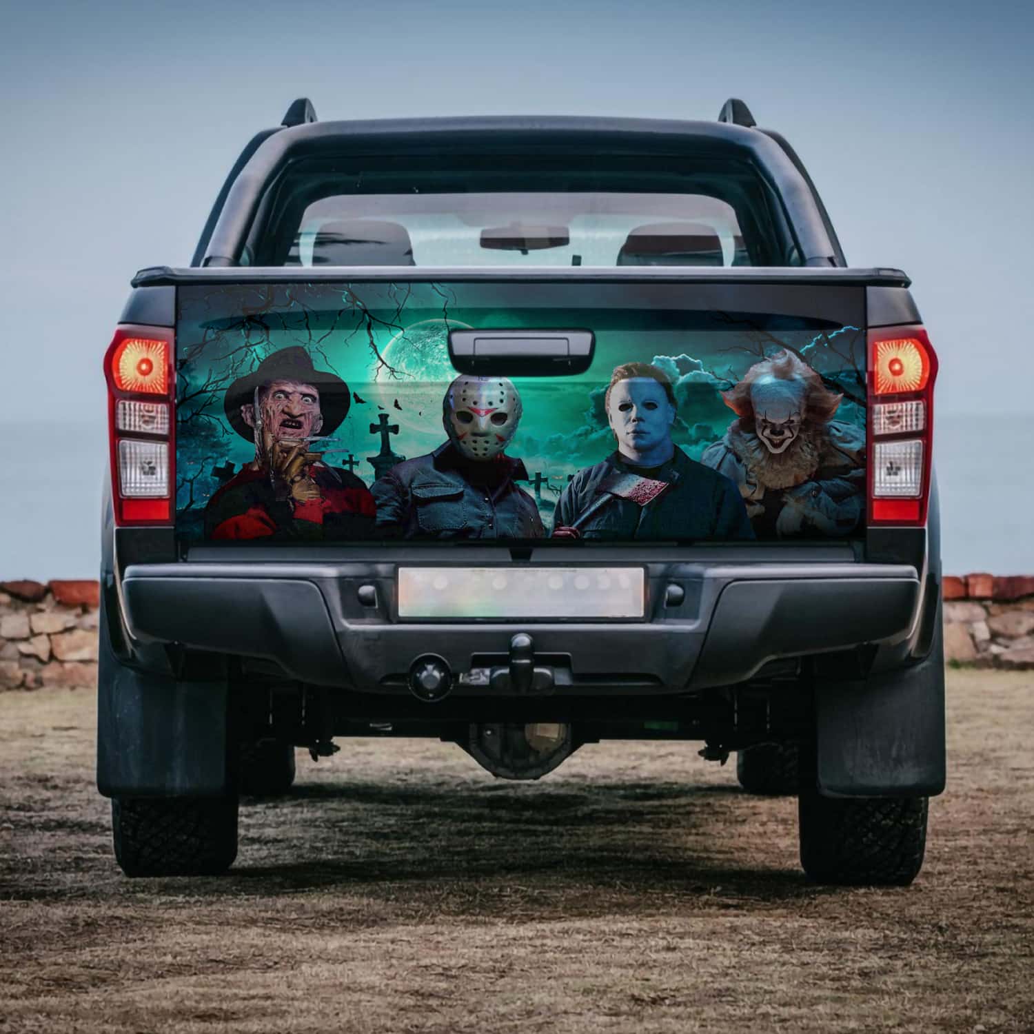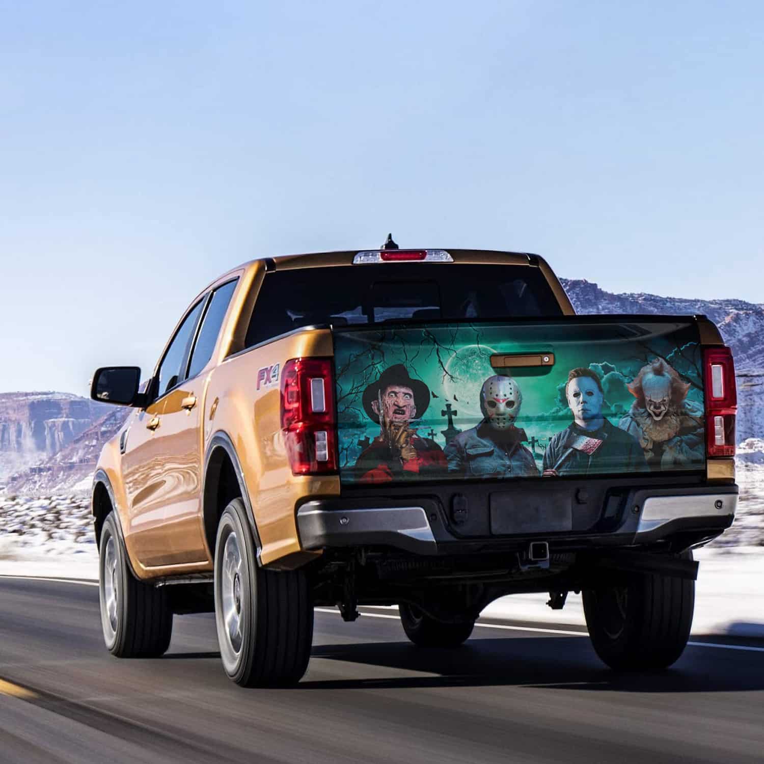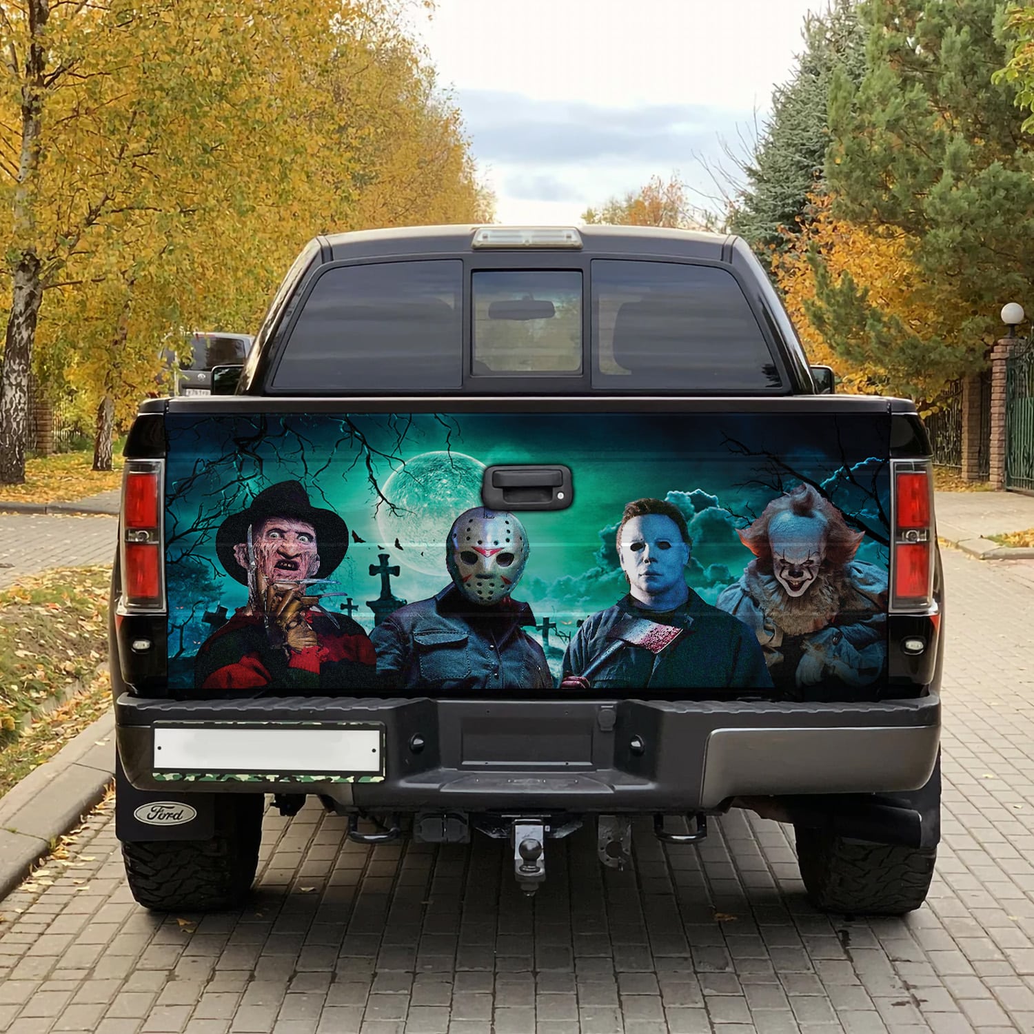 Let’s Shop Halloween Horror Movie Characters Truck Tailgate Decal Sticker Wrap – Vinyl Graphic Decal Bumper Sticker – Halloween Gifts!