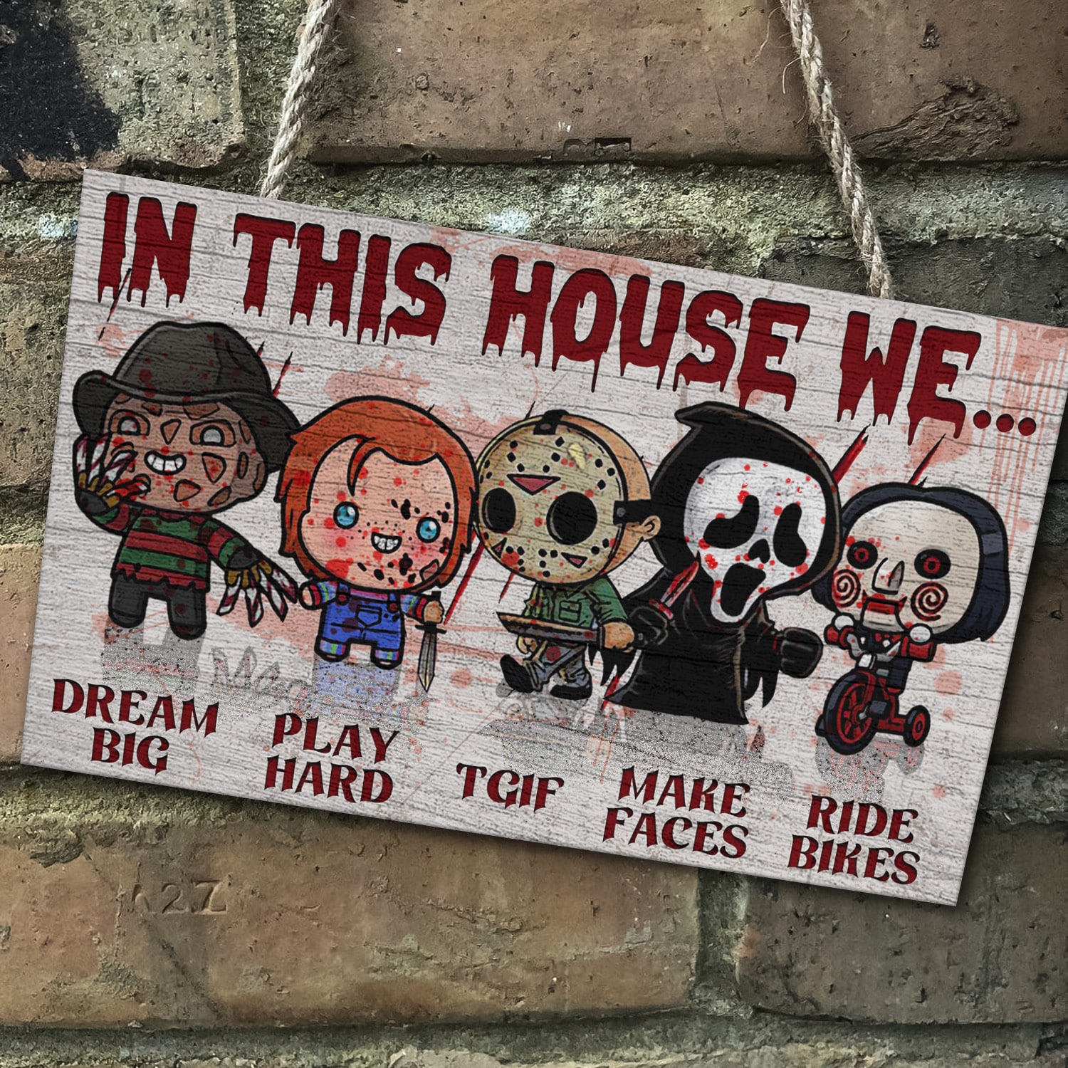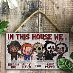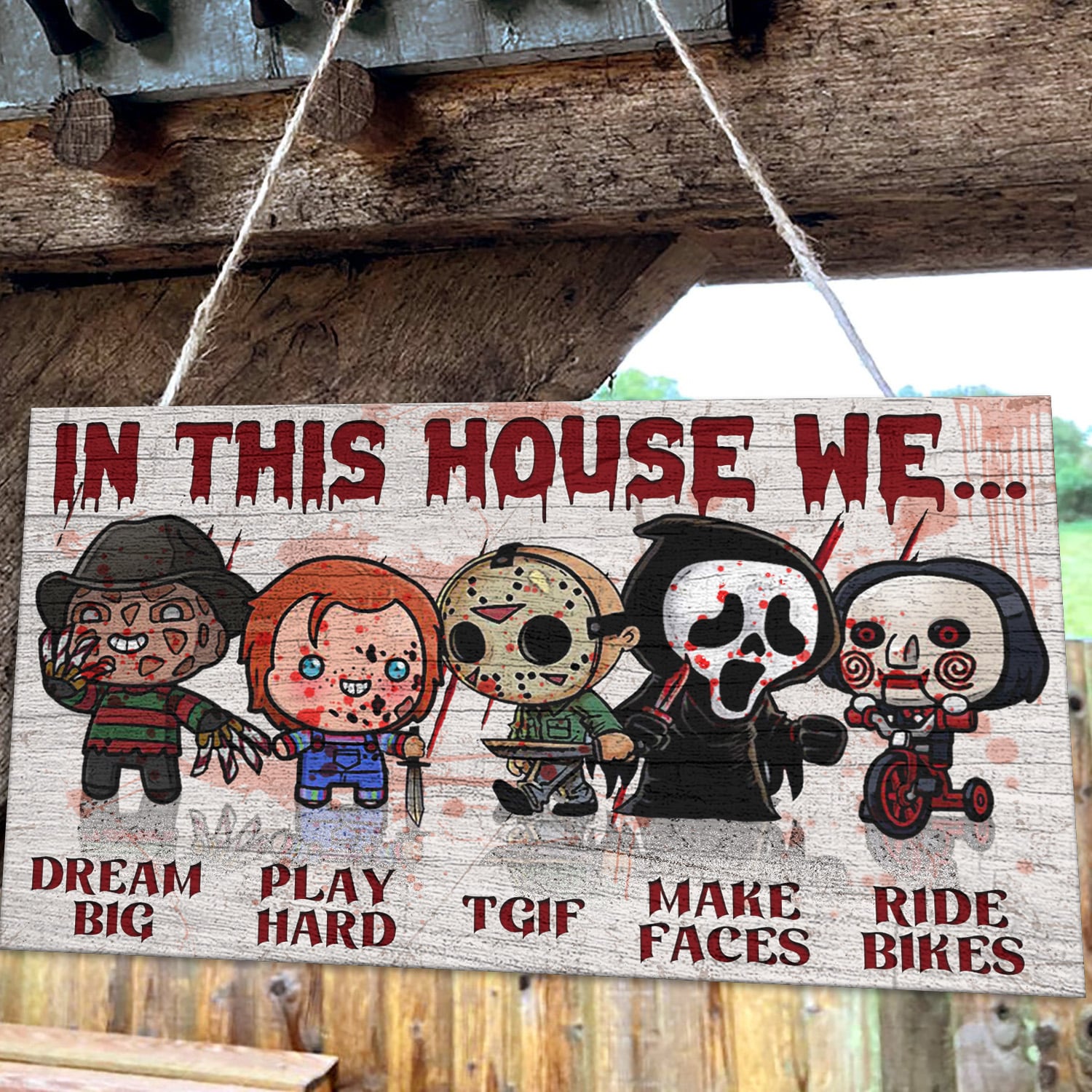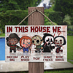Are you spending too much time to find creative merchandise for you or suitable & special gifts for your mommy, your daddy, your son, your daughter, your children, your friends or someone you love? The struggle is over because we have various In This House We Love Family Dream Big Like Scary Movies Halloween Characters Outdoor Welcome House Door Sign, Funny In This House Halloween Meme Saying Door Sign, In This House We Love Friday Door Sign, Halloween Decor Chibi Horror Characters Door Sign which will make perfect presents for your beloveds. In order to make your present stand out, we have created lots of unique and awesome customized photo gifts & personalized designs.