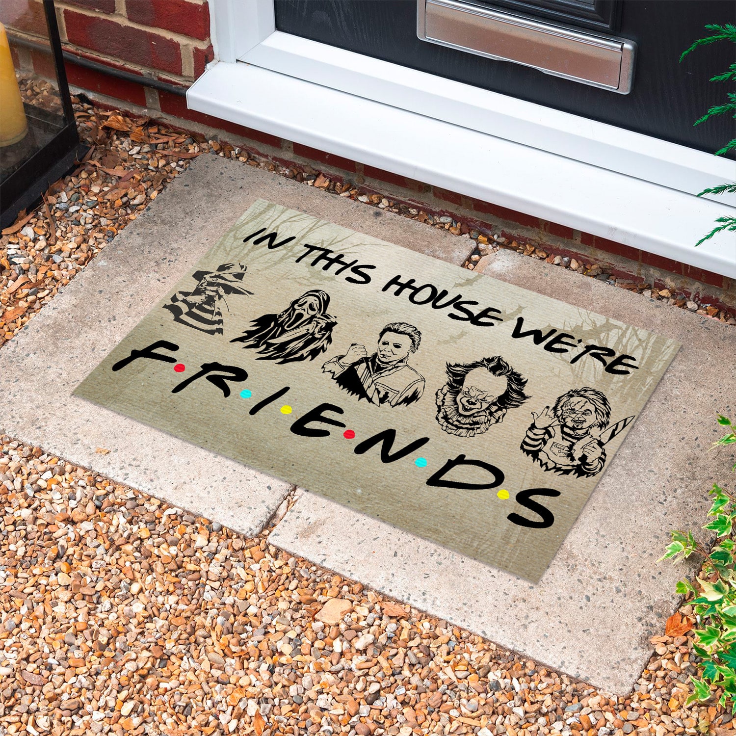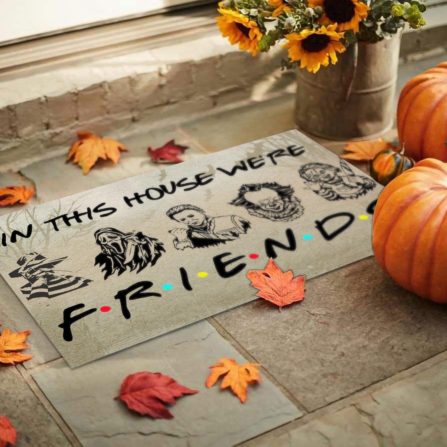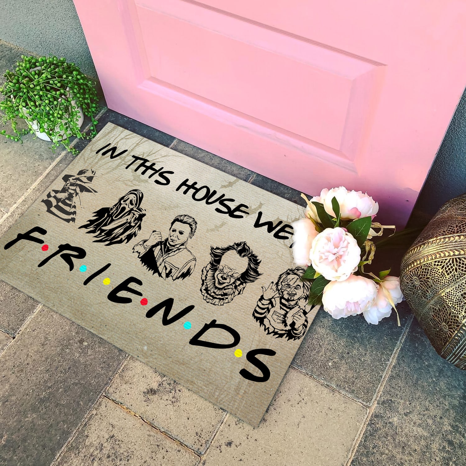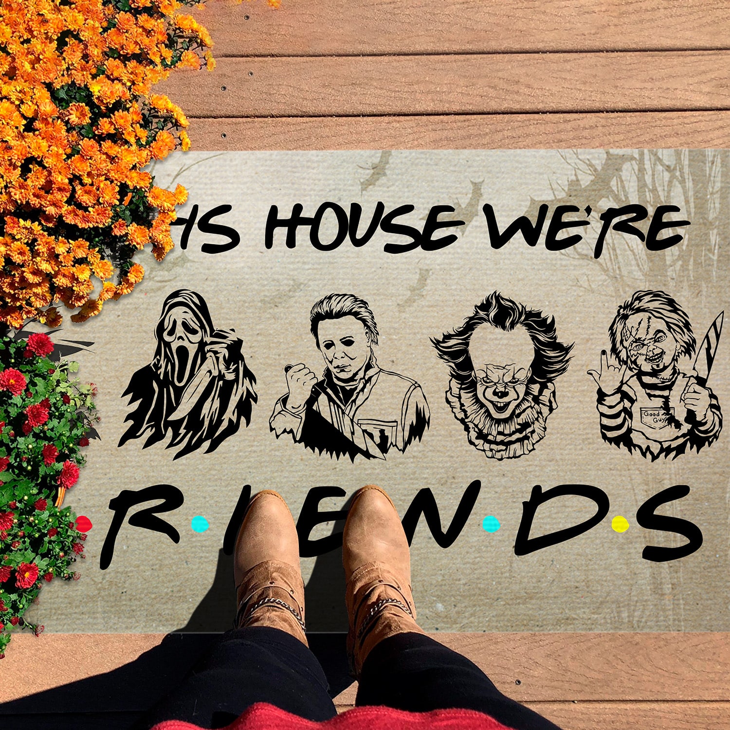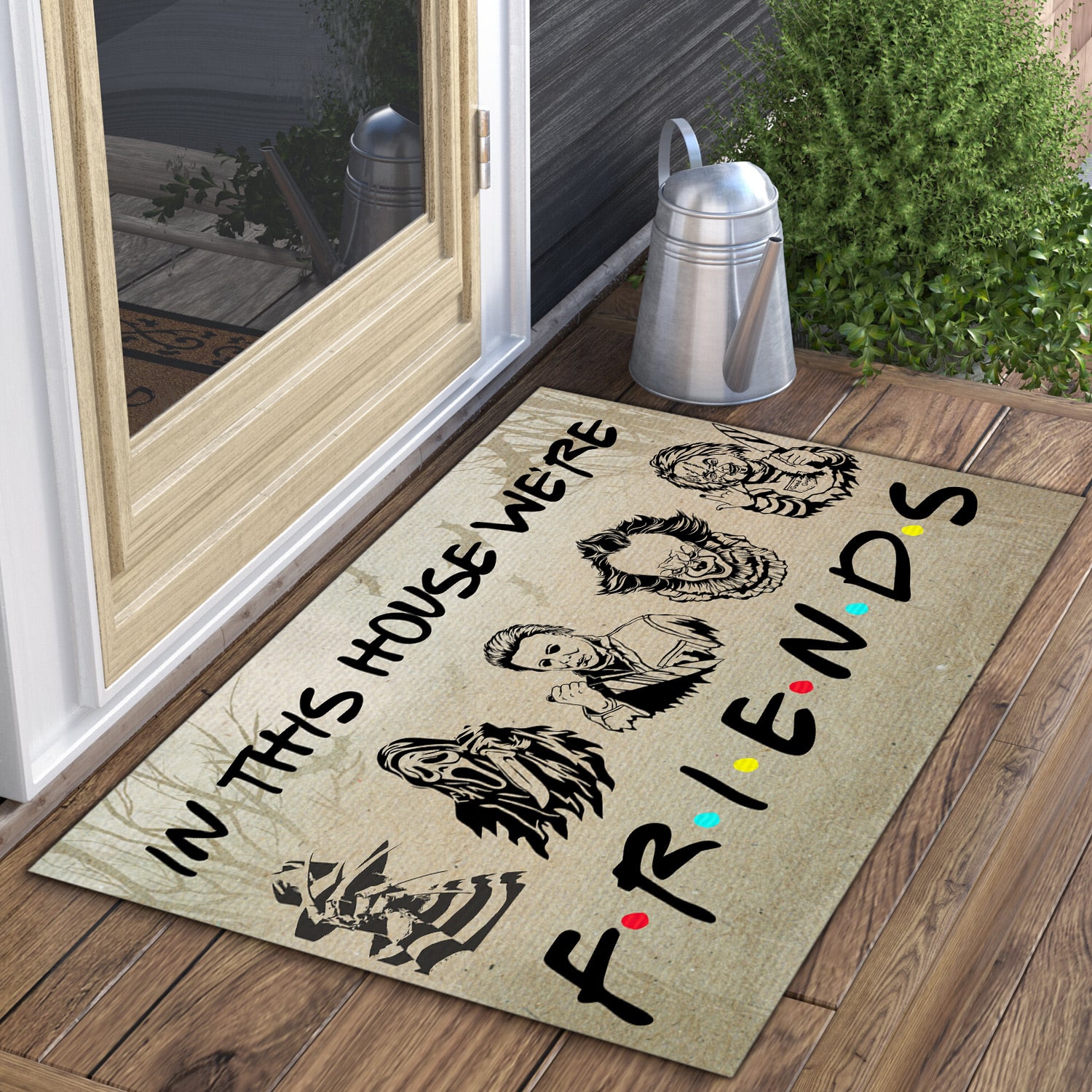 Let’s Shop In This House We’re Friends Love Family Dream Big Like Scary Movies Halloween Characters Outdoor Welcome House Doormat!