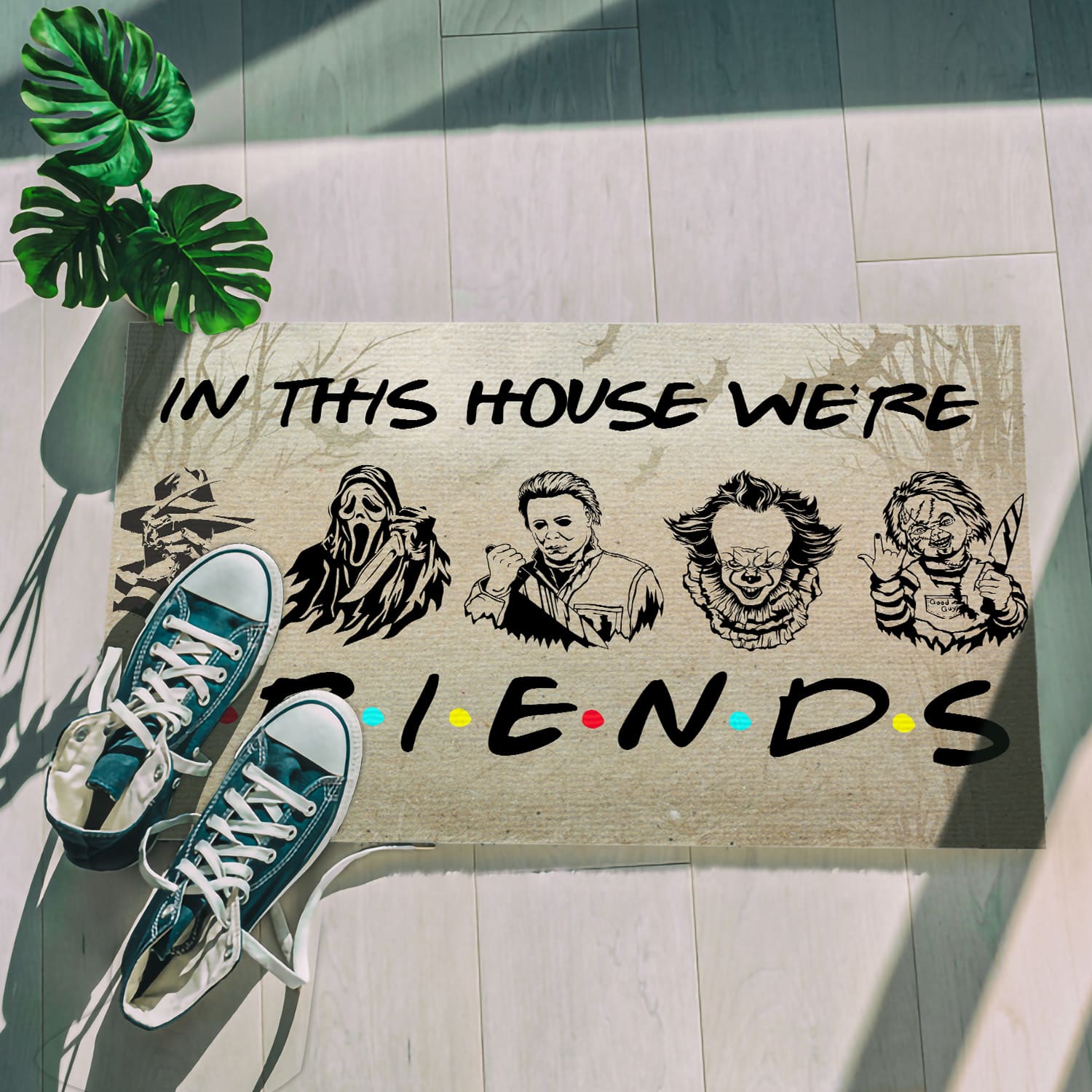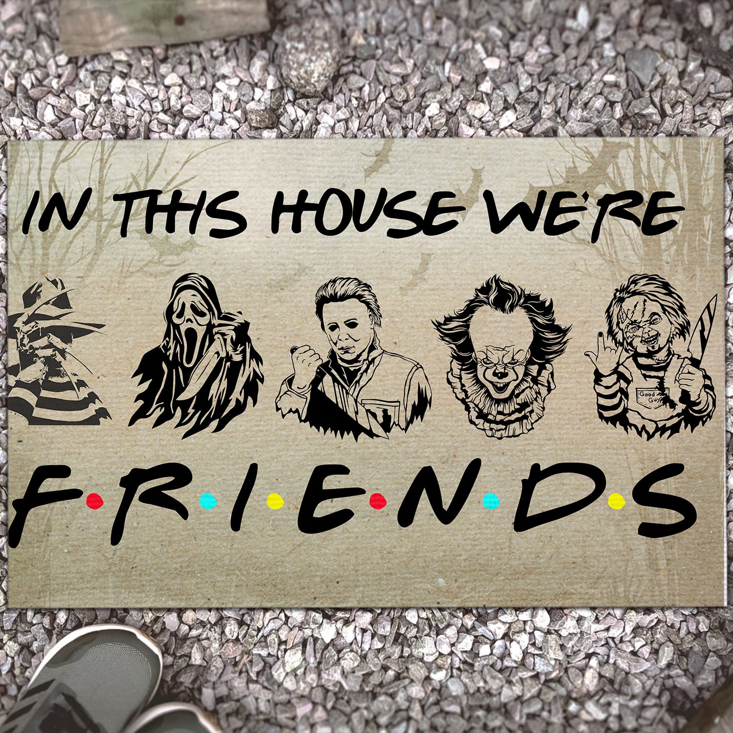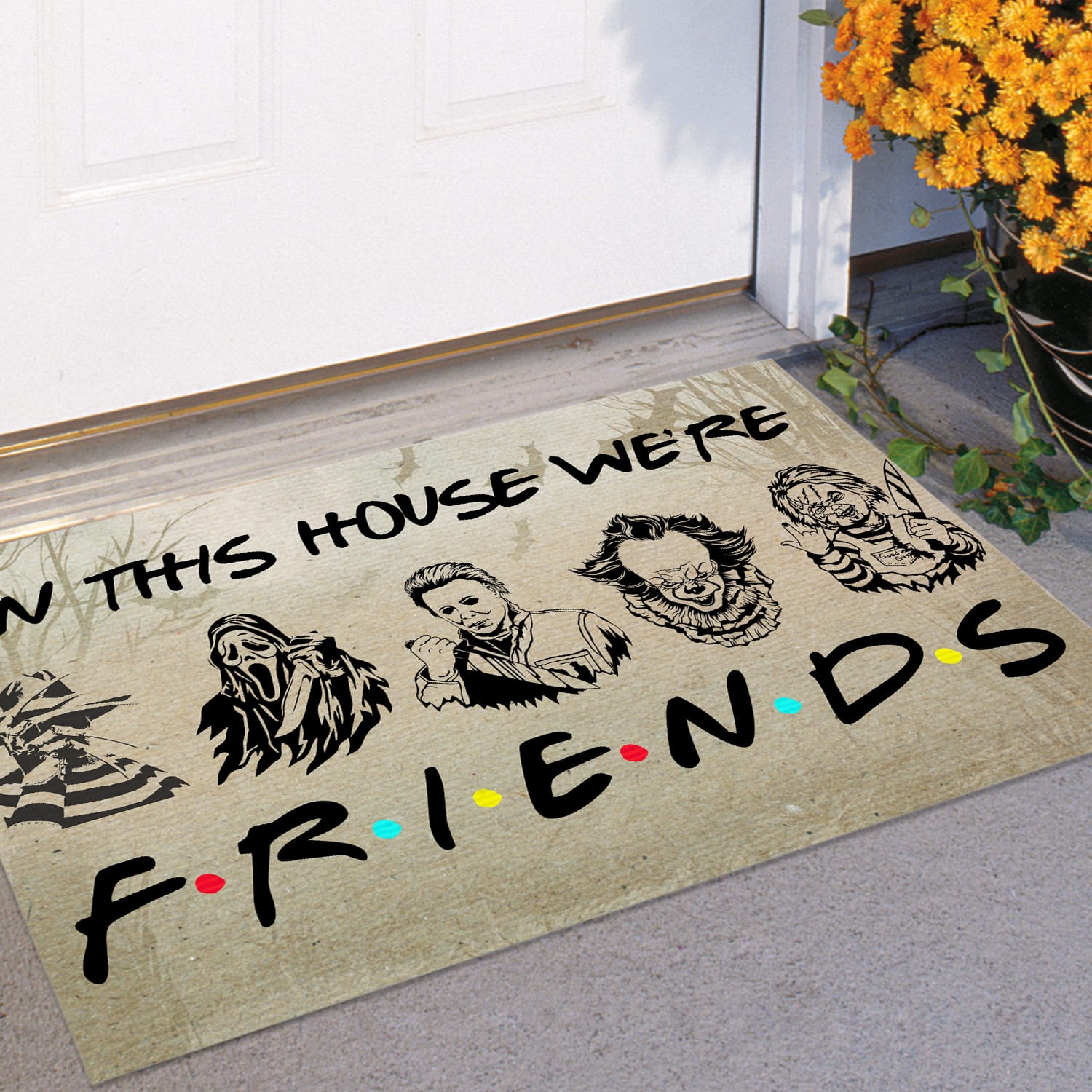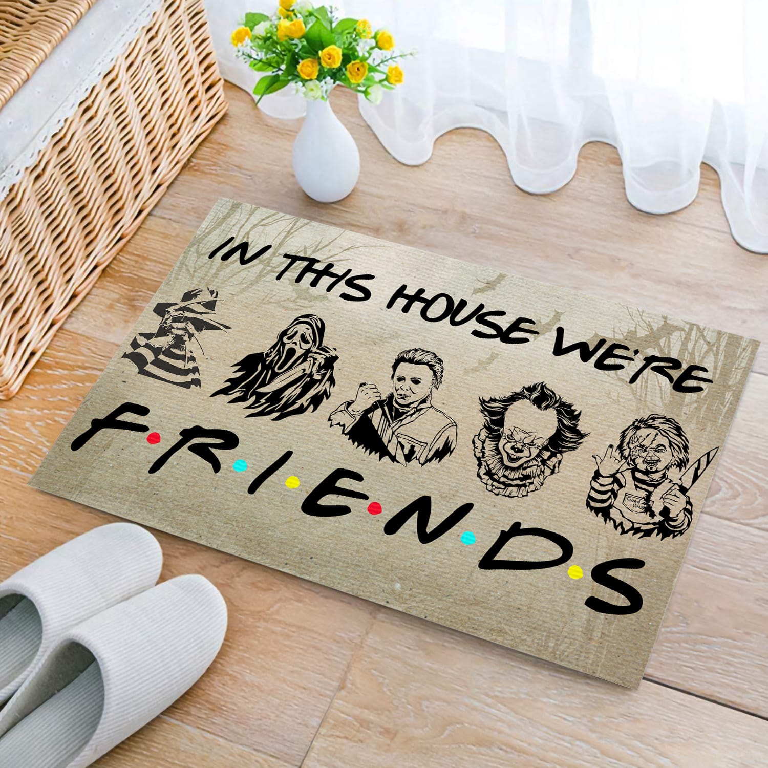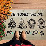 Let’s Shop In This House We’re Friends Love Family Dream Big Like Scary Movies Halloween Characters Outdoor Welcome House Doormat!