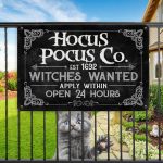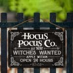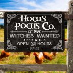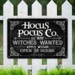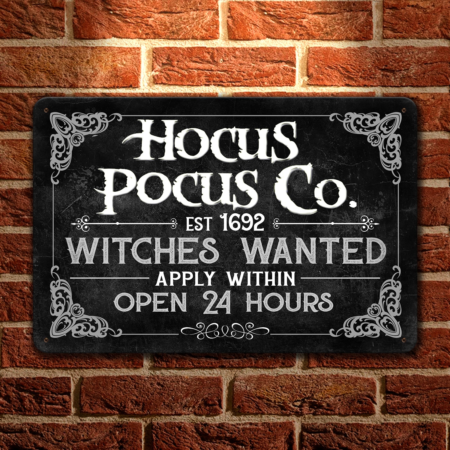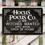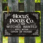 Let’s Shop Hocus Pocus Co. Witches Wanted Apply Within Open 24 Hours Decorative Metal Sign – Funny Halloween Wall Sign Garden Sign!