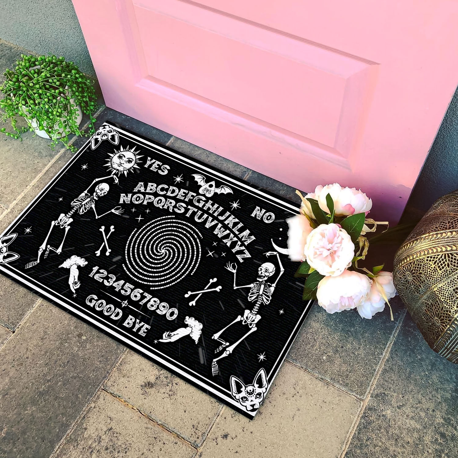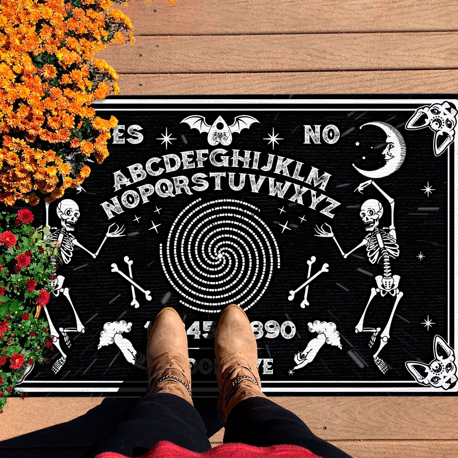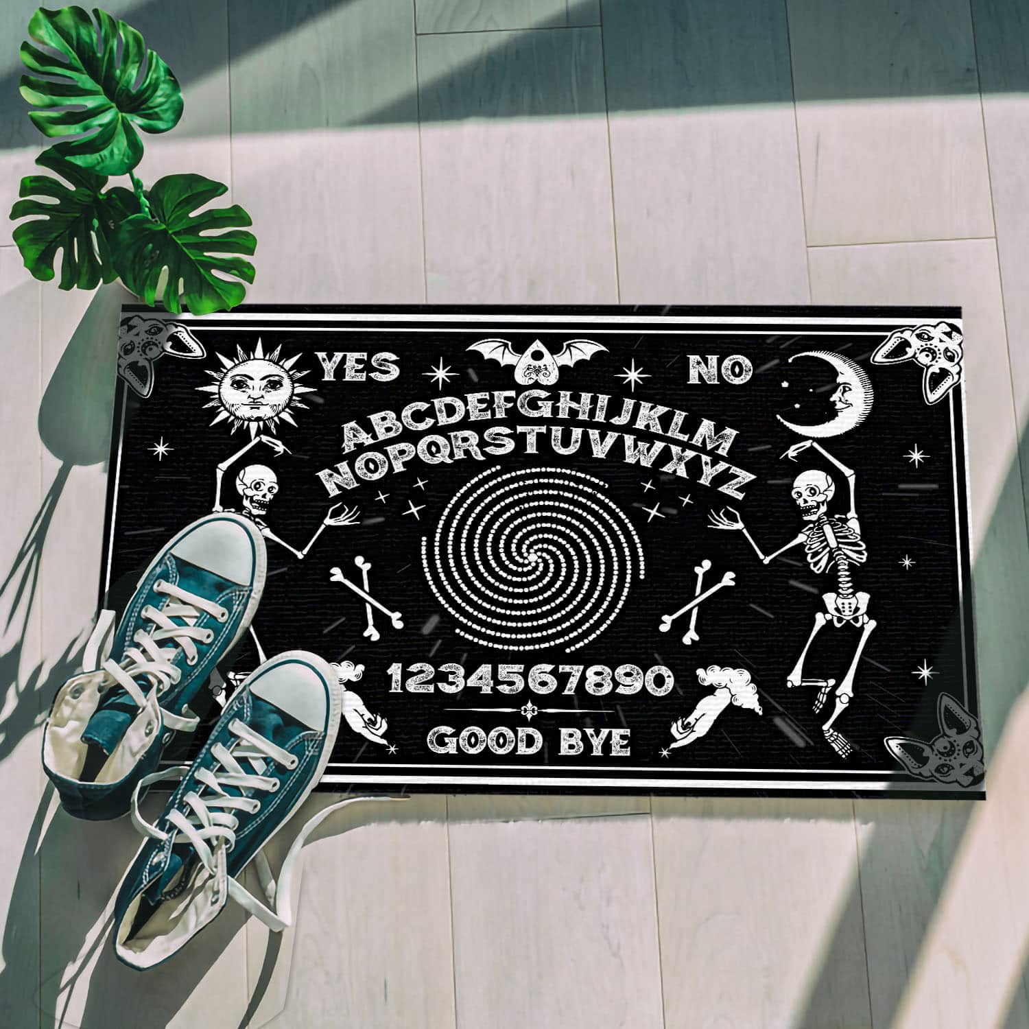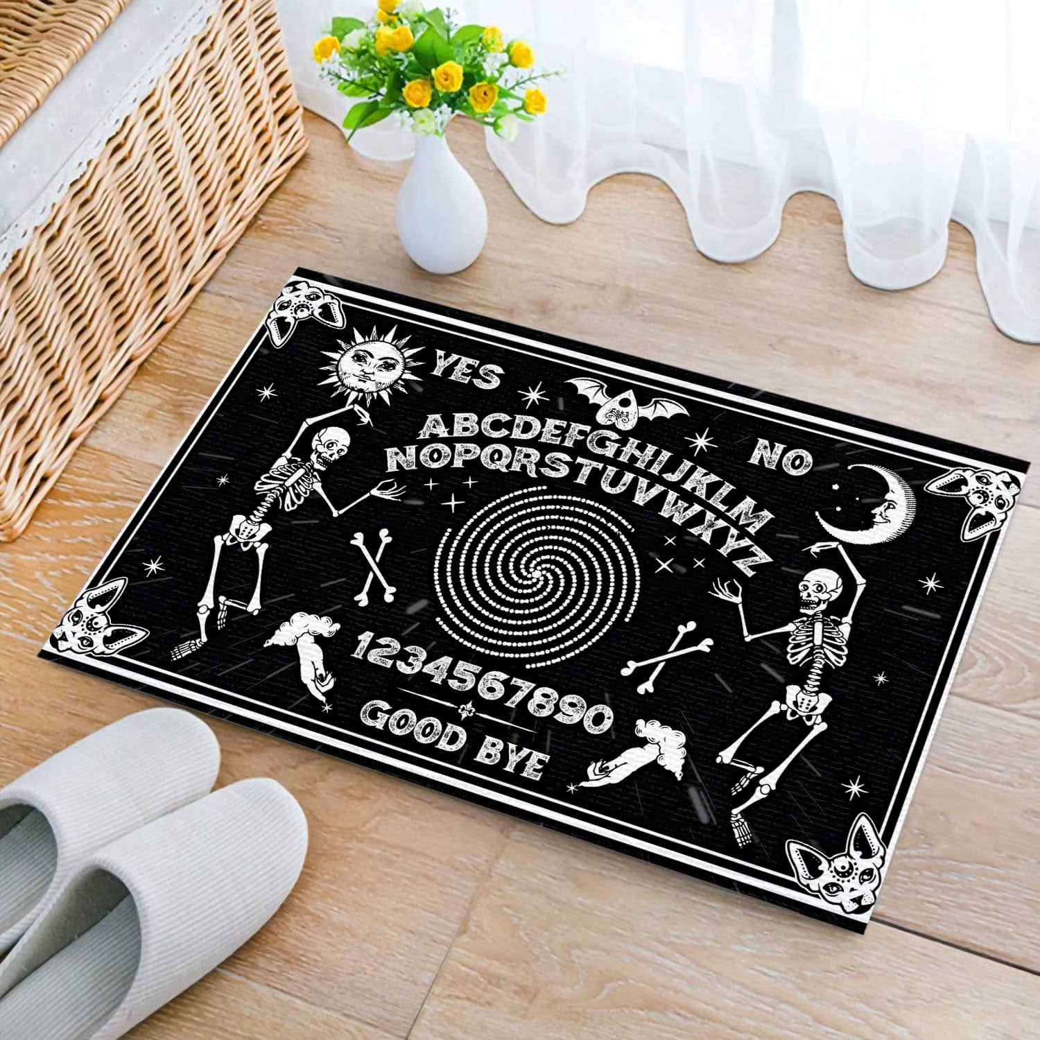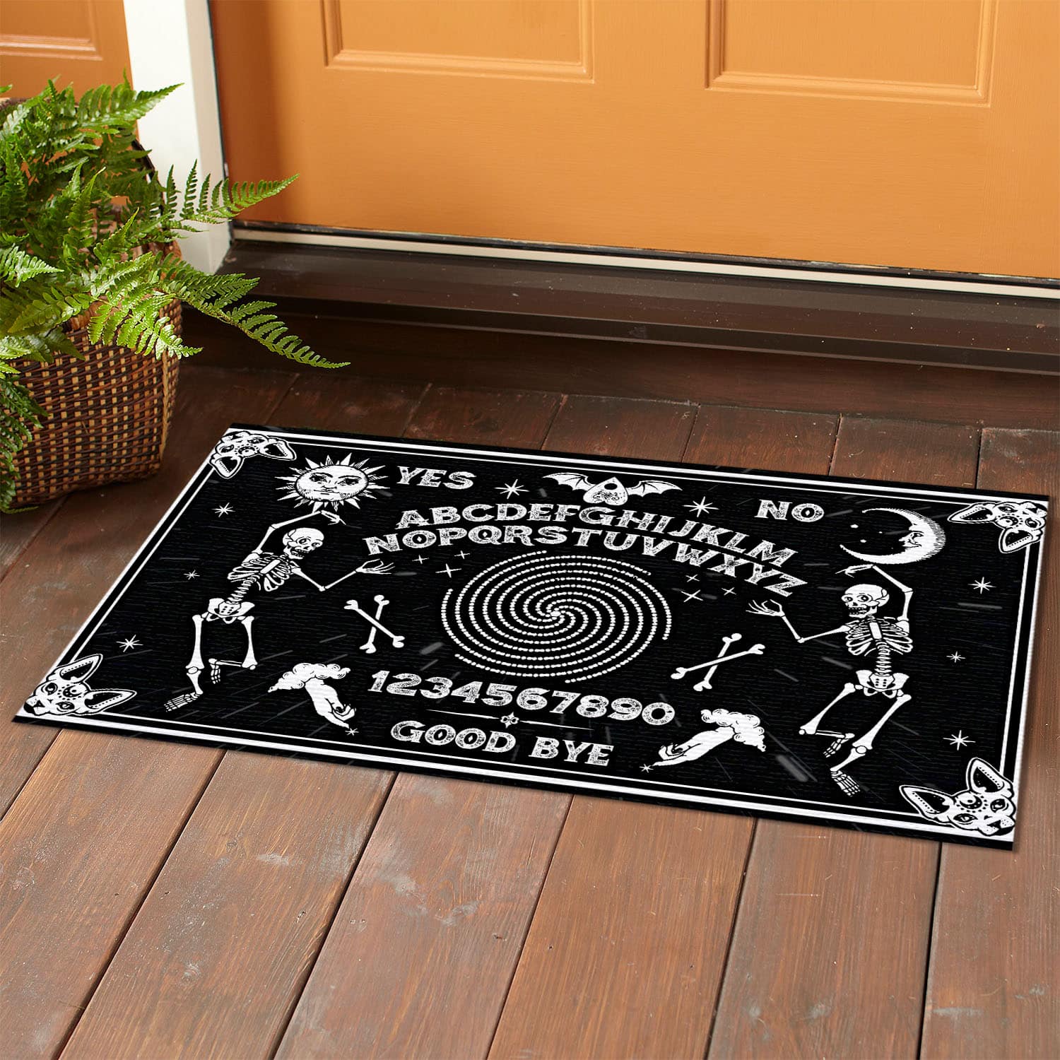 Let’s Shop Classic Skeleton Magic Ouija Board Black Indoor Outdoor Decorative Doormat!