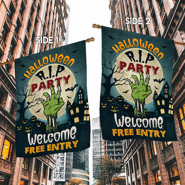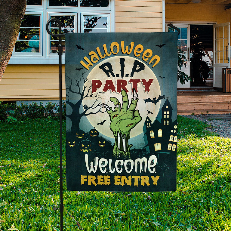 Let’s Shop Halloween Rip Party Garden Flag – House Flag – Wall Flag- Happy Halloween Flag!